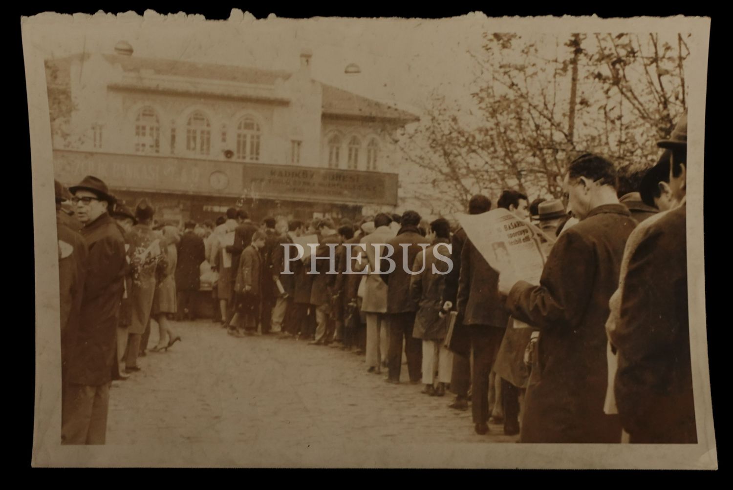 Kadıköy Vapur İskelesi kuyruğunda gazete okuyarak vakit geçirenler, 9 Aralık 1968, 12x18 cm...