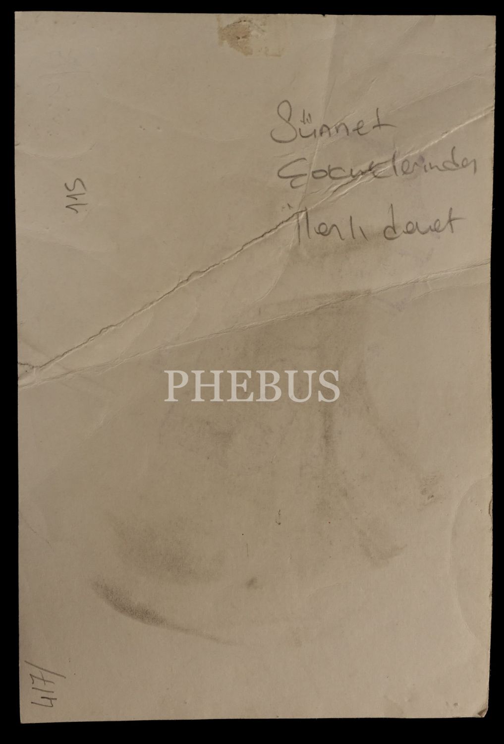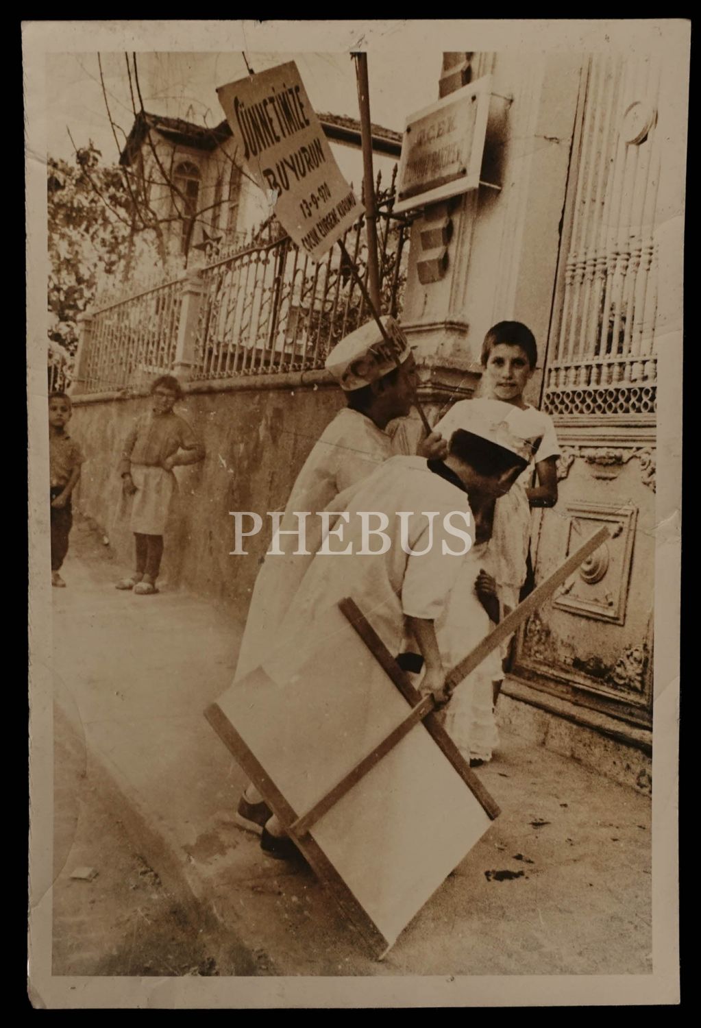 Ellerinde davet pankartlarıyla dolaşan sünnet çocukları, "Sünnetimize Buyurun - 13.9.970 - Çocuk Esirgeme Kurumu", 12x18 cm...