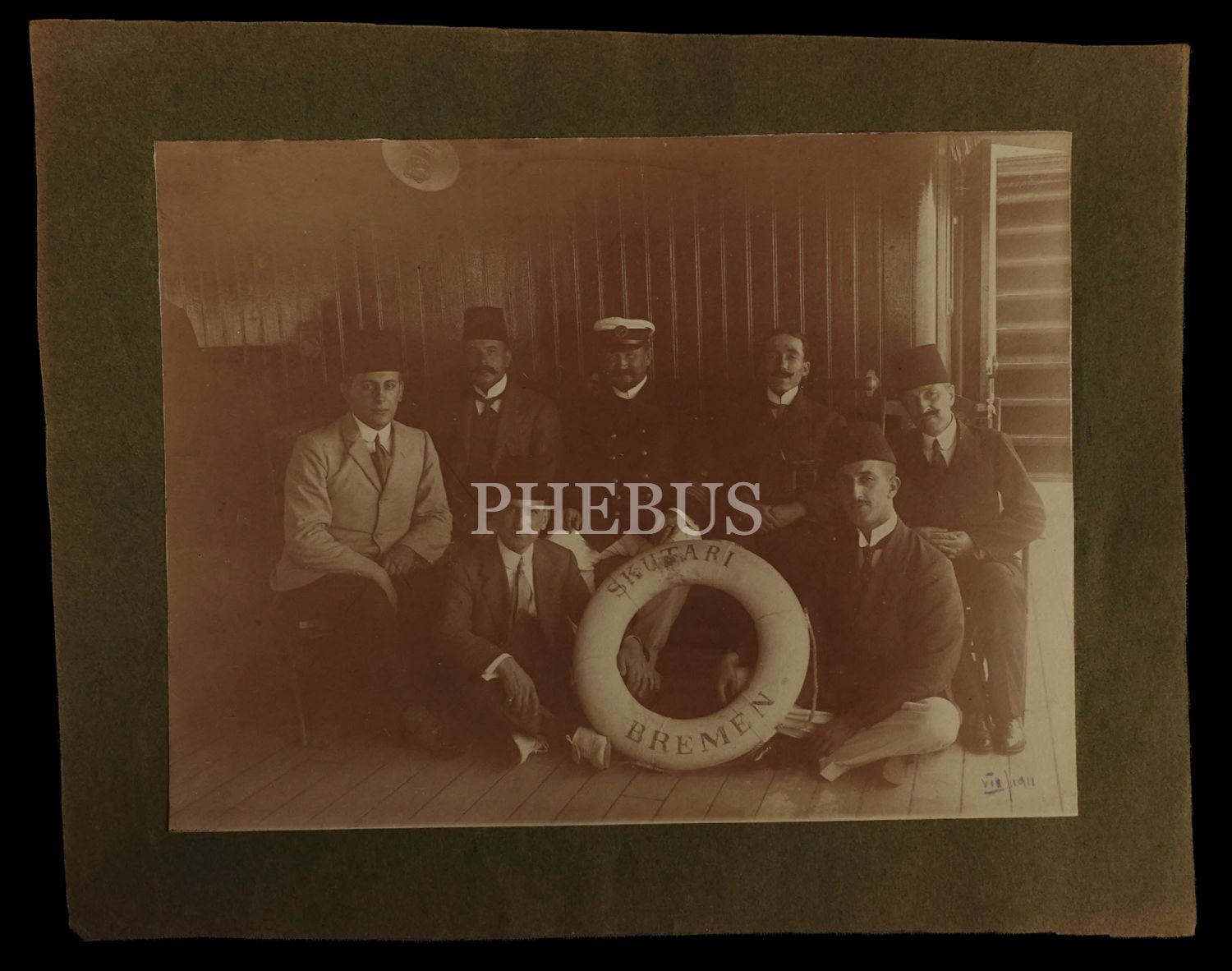 Skutari (Üsküdar) - Bremen vapuru mürettebatının 1911 tarihli hatıra fotoğrafı, 12x16 cm...