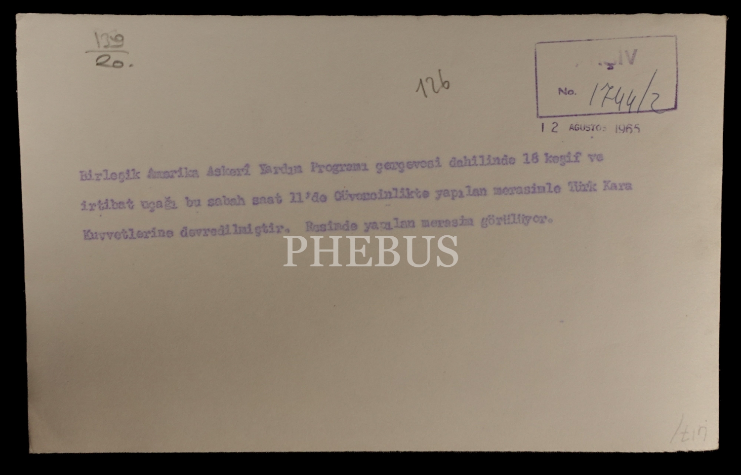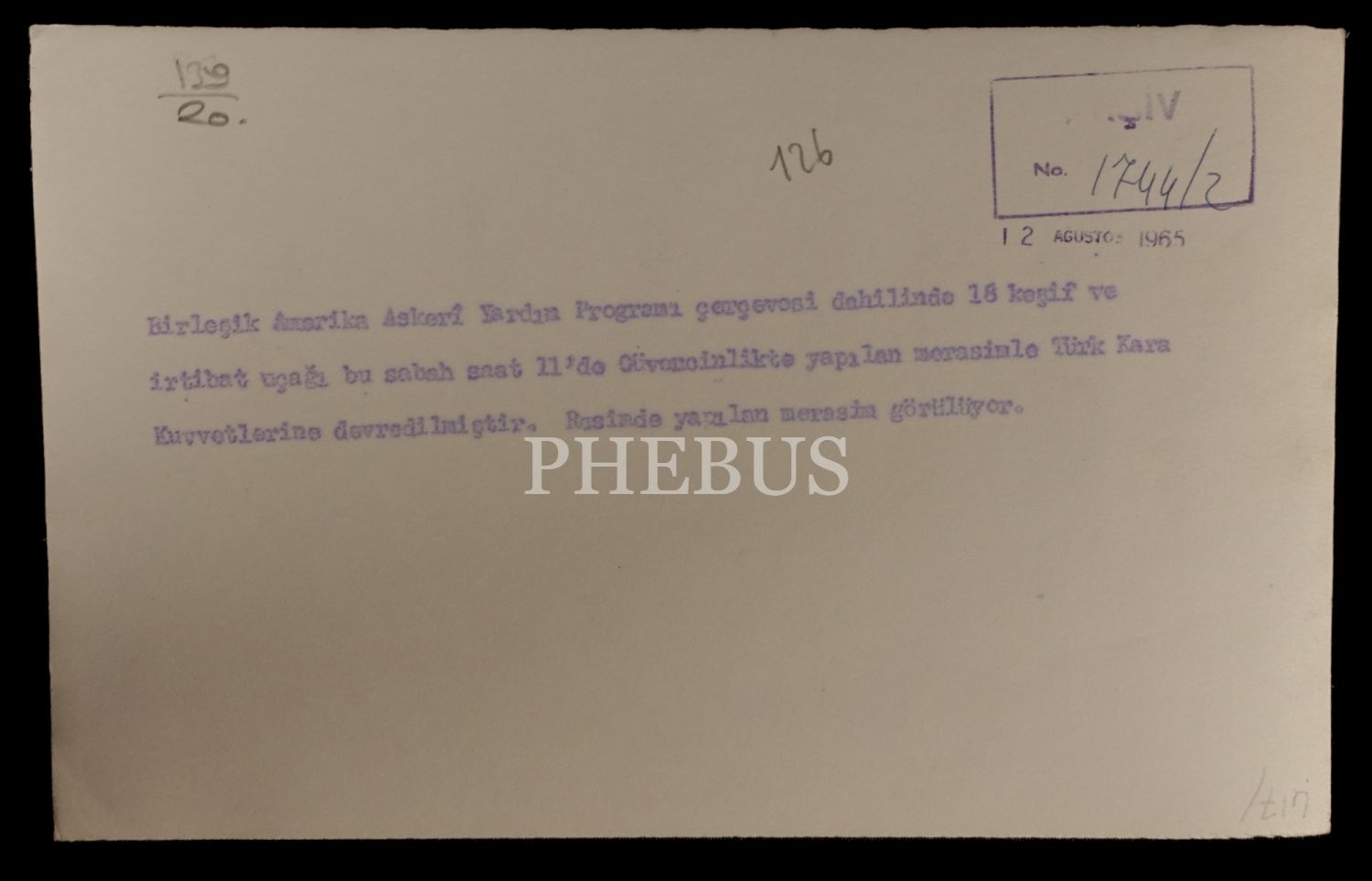 "Birleşik Amerika Askerî Yardım Programı çerçevesi dahilinde 18 keşif ve irtibat uçağı bu sabah 11´de Güvercinlikte yapılan merasimle Türk Hava Kuvvetlerine devredilmiştir. Resimde yapılan merasim görülüyor."
