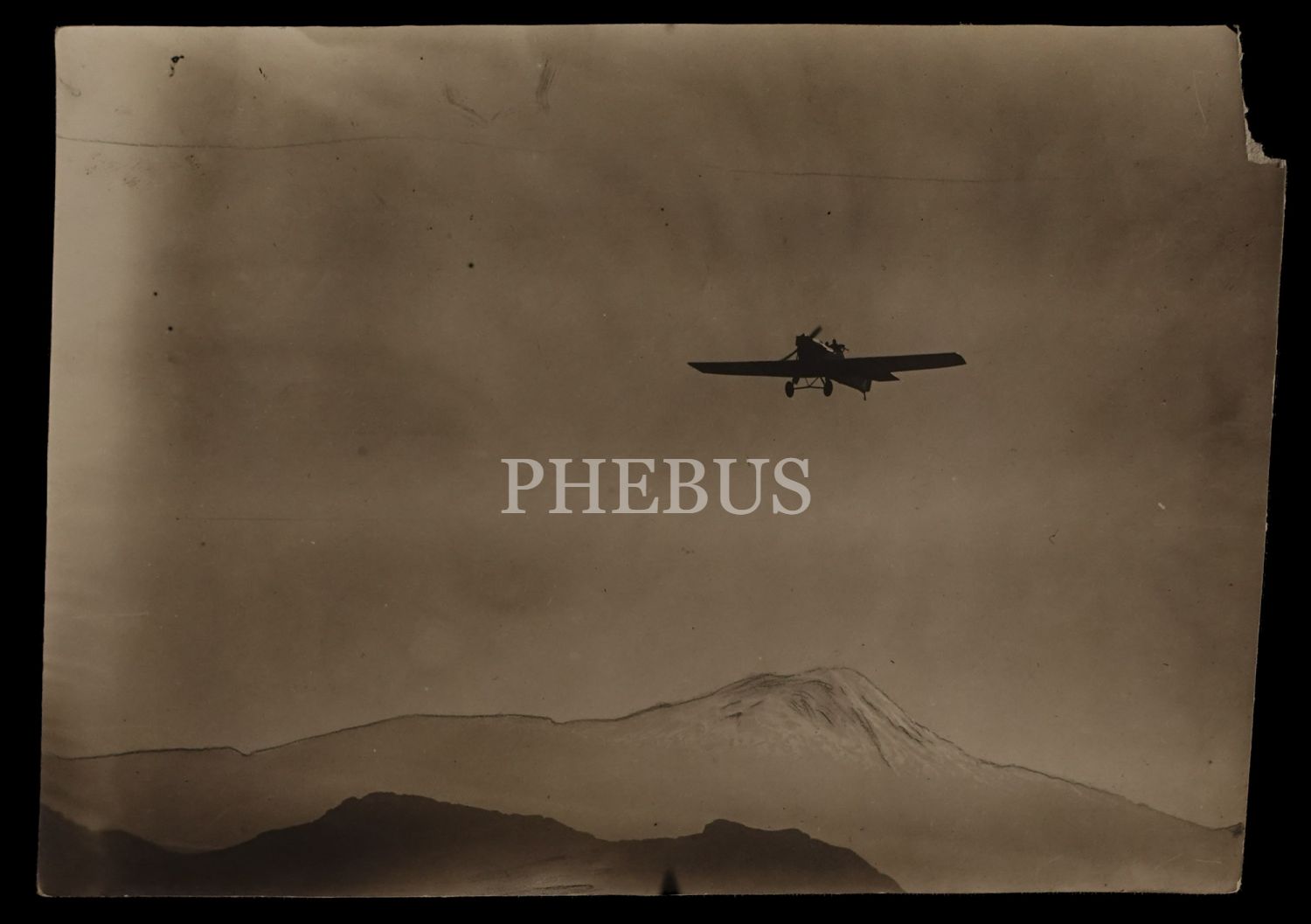 Ağrı ufuklarında inişe geçen bir Türk tayyaresi, 11x16 cm...