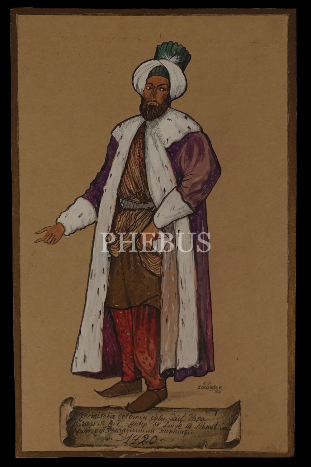 Çizimin altında şu açıklama yer almaktadır: "Yirmisekiz Çelebinin oğlu; Sait Paşa. Babası ile Paris´e gidip XV. Luiye III. Ahmed´in Nameyi Hümayununu sunmuş. 1720"