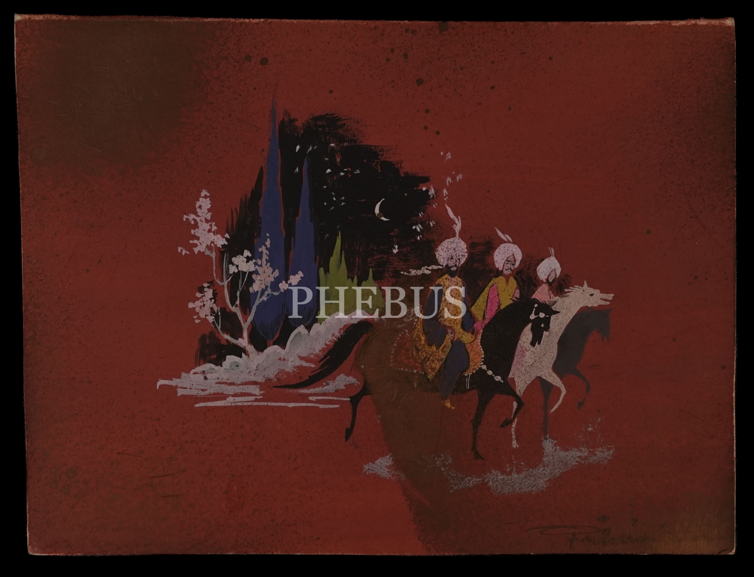 Gülümser Aral´dan ıslak imzalı at süren Osmanlılar çizimi, 14x18 cm...