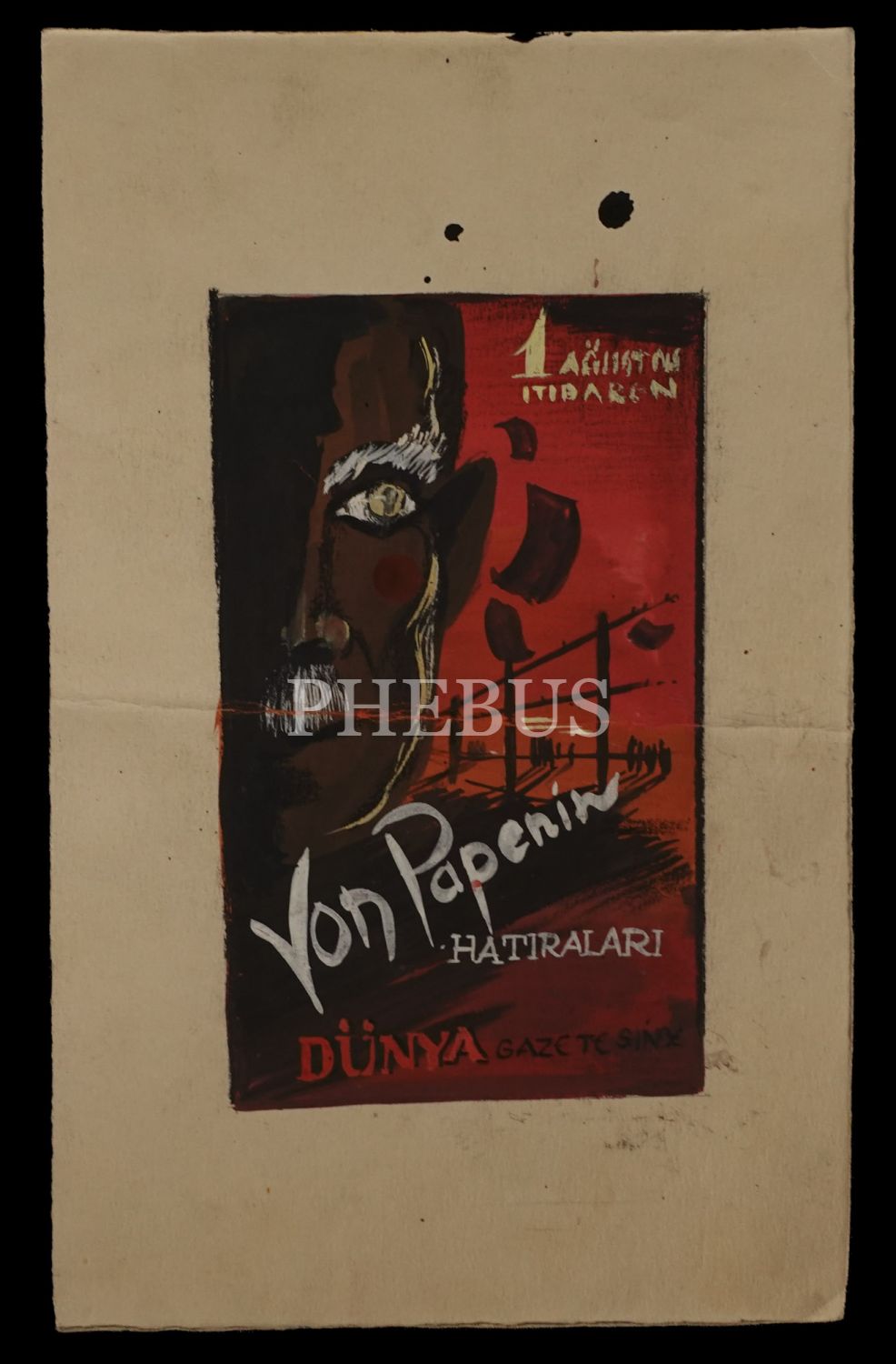 Gülümser Aral´dan "Von Papen´in Hatıraları 1 Ağustostan İtibaren Dünya Gazetesinde" başlıklı duyuru çizimi, 14x22 cm...