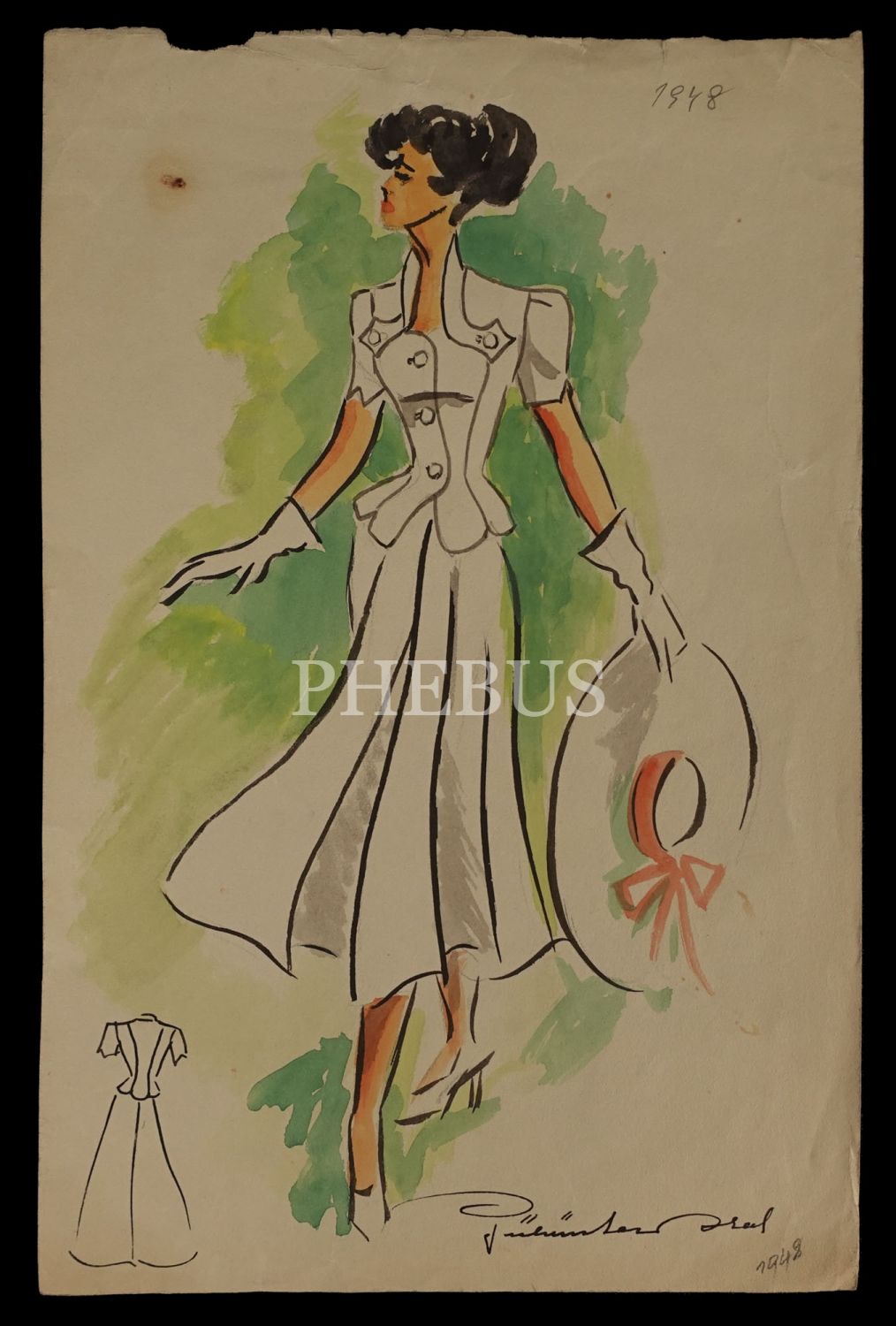 Gülümser Aral´dan ıslak imzalı, 1948 tarihli kadın çizimi, 17x27 cm...