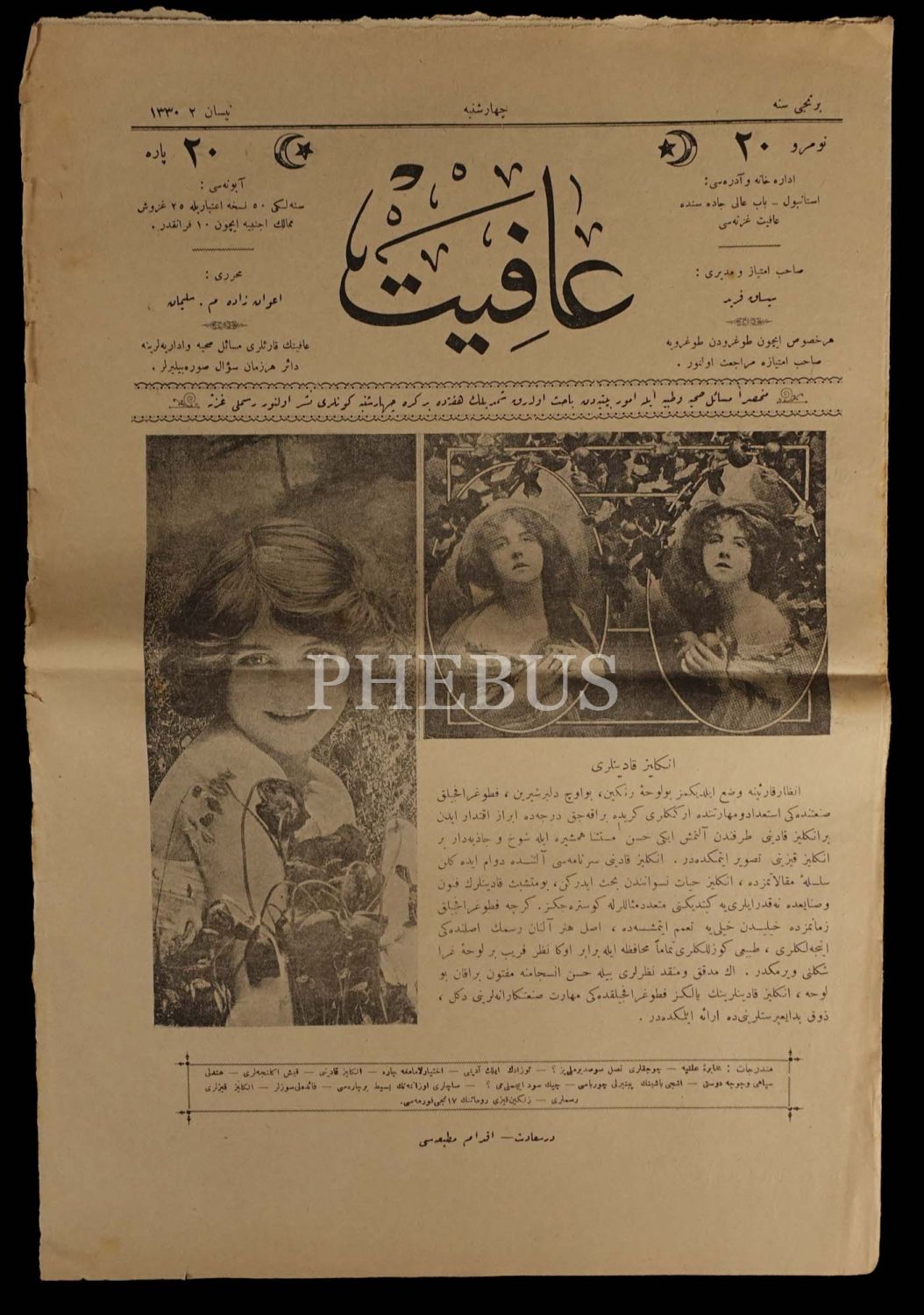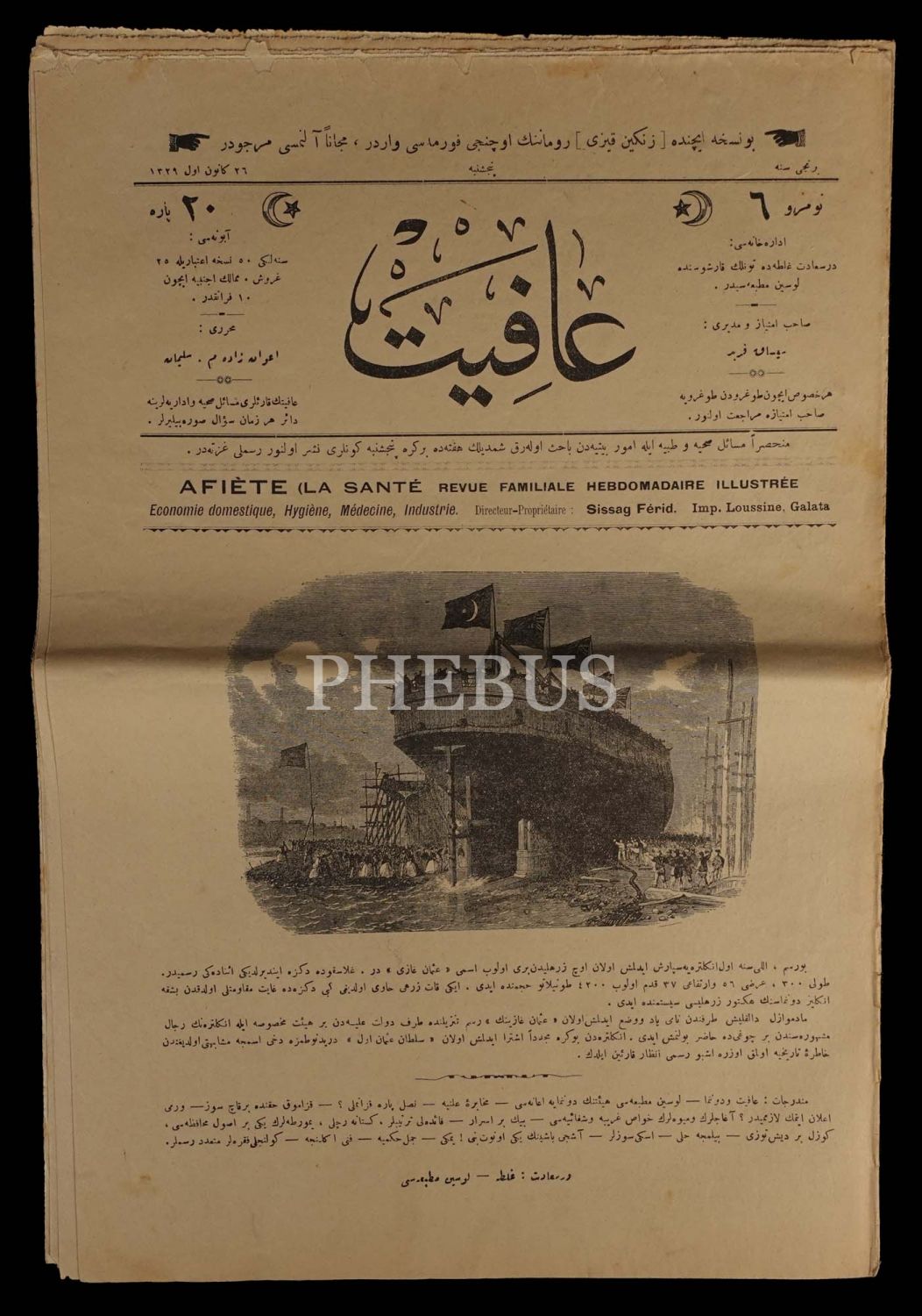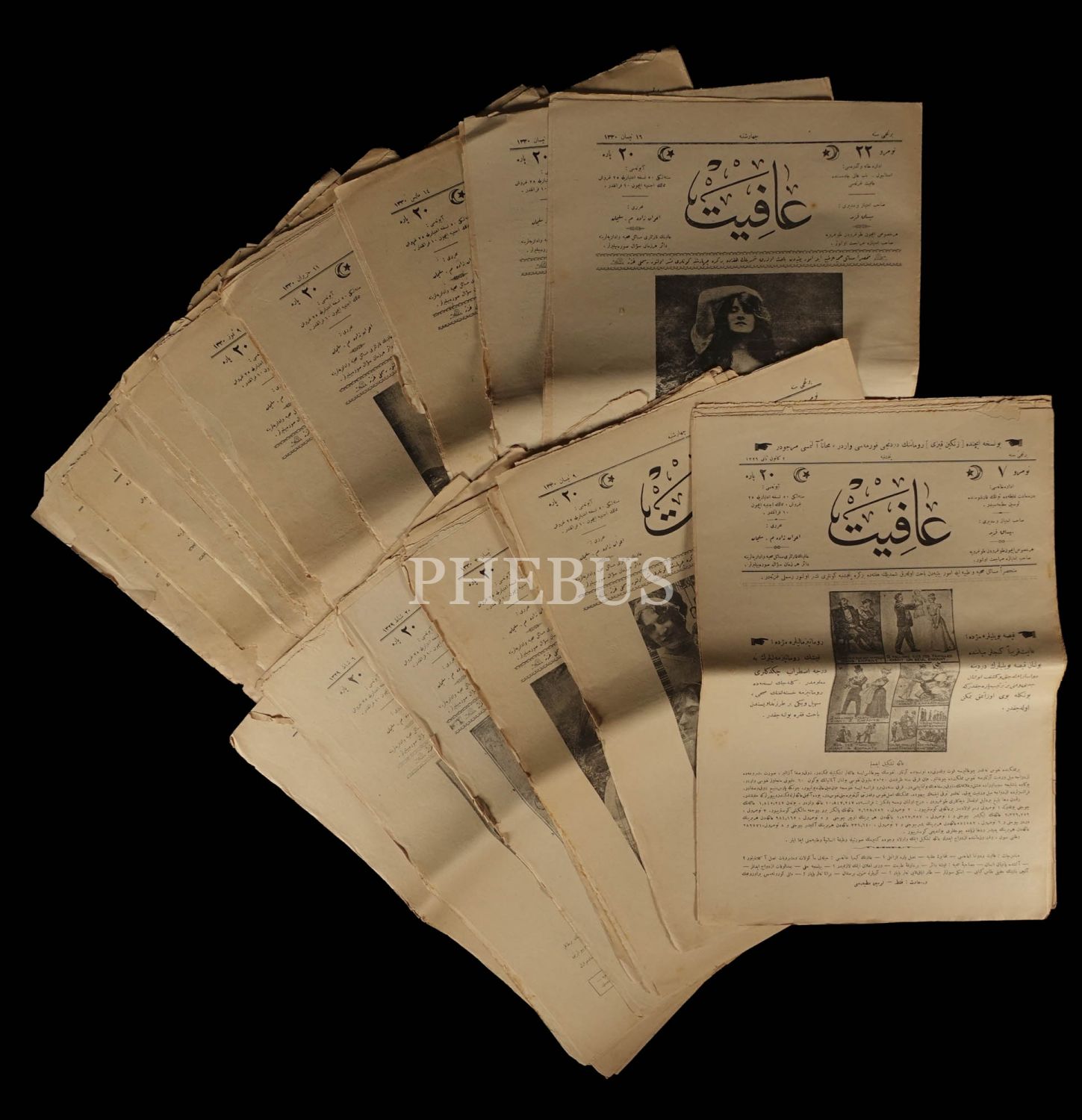AFİYET dergisinin 15 Zilhicce 1331 ilâ 9 Ağustos 1330 tarihleri arasında yayımlanan 35 sayısı, 25x38 cm...