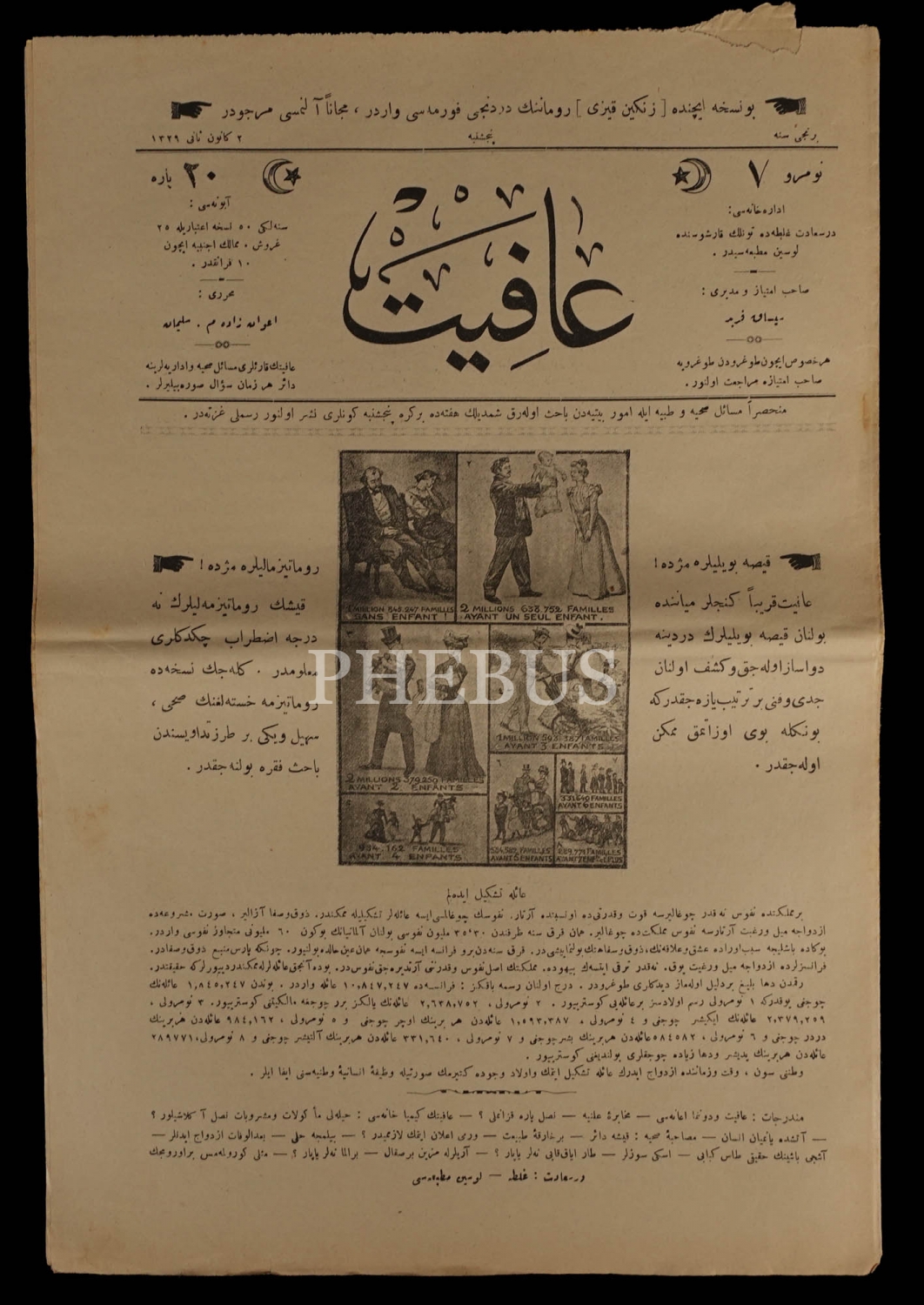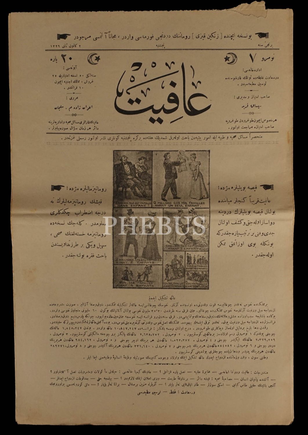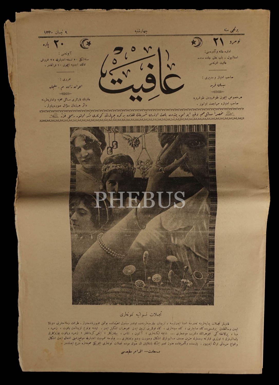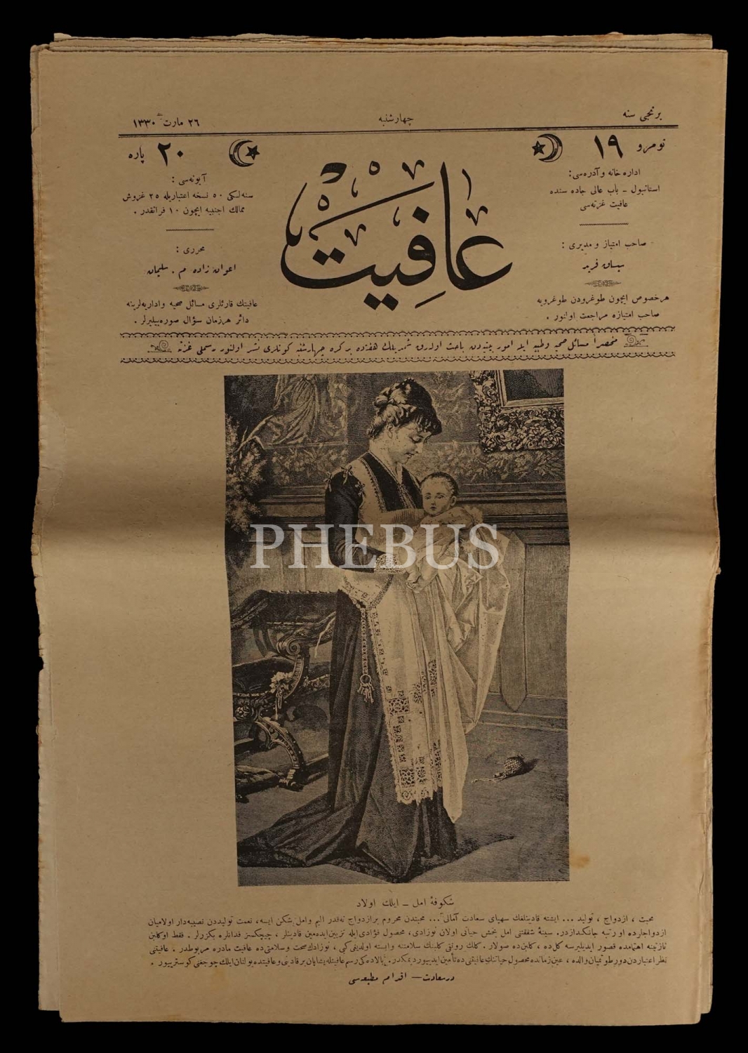 AFİYET dergisinin 15 Zilhicce 1331 ilâ 9 Ağustos 1330 tarihleri arasında yayımlanan 35 sayısı, 25x38 cm...