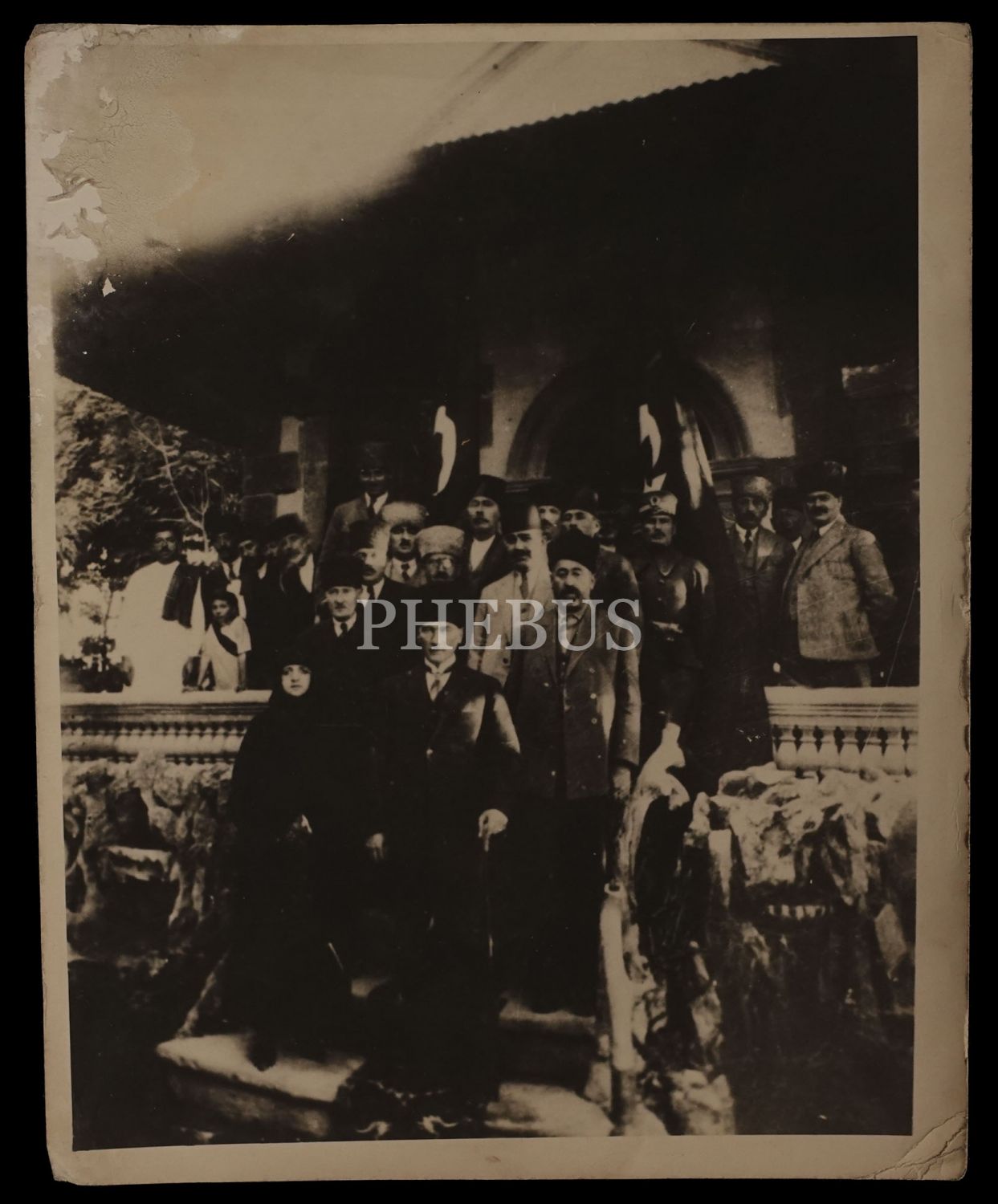 Mustafa Kemal Atatürk´ün, Latife Hanım ve devlet erkanı eşliğinde Türkiye Büyük Millet Meclisi önünde görüldüğü fotoğraf, 20x25 cm...