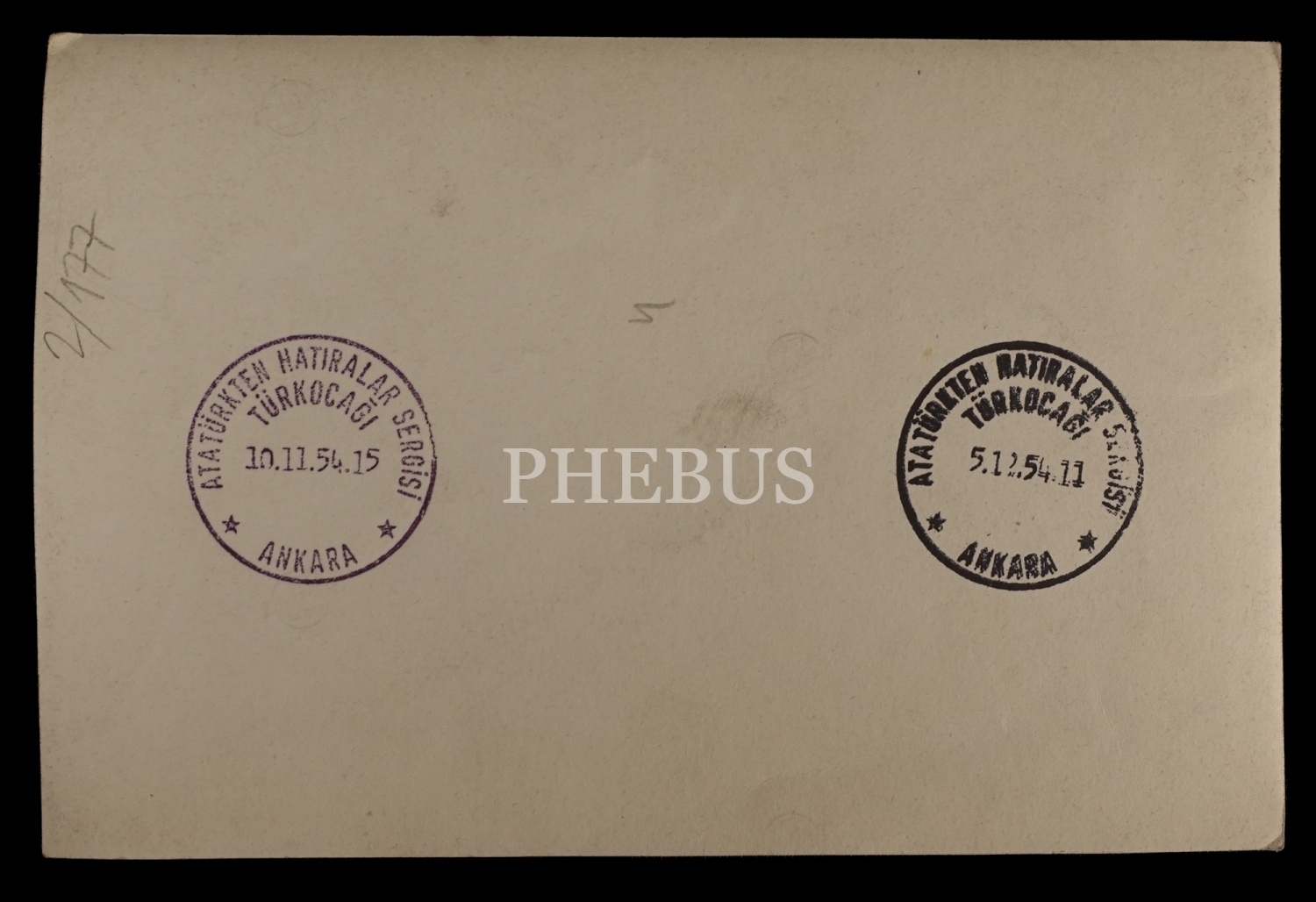 İkinci baskıdır. Birinin arka yüzü "Atatürkten Hatıralar Sergisi / Ankara Türkocağı" damgalı.