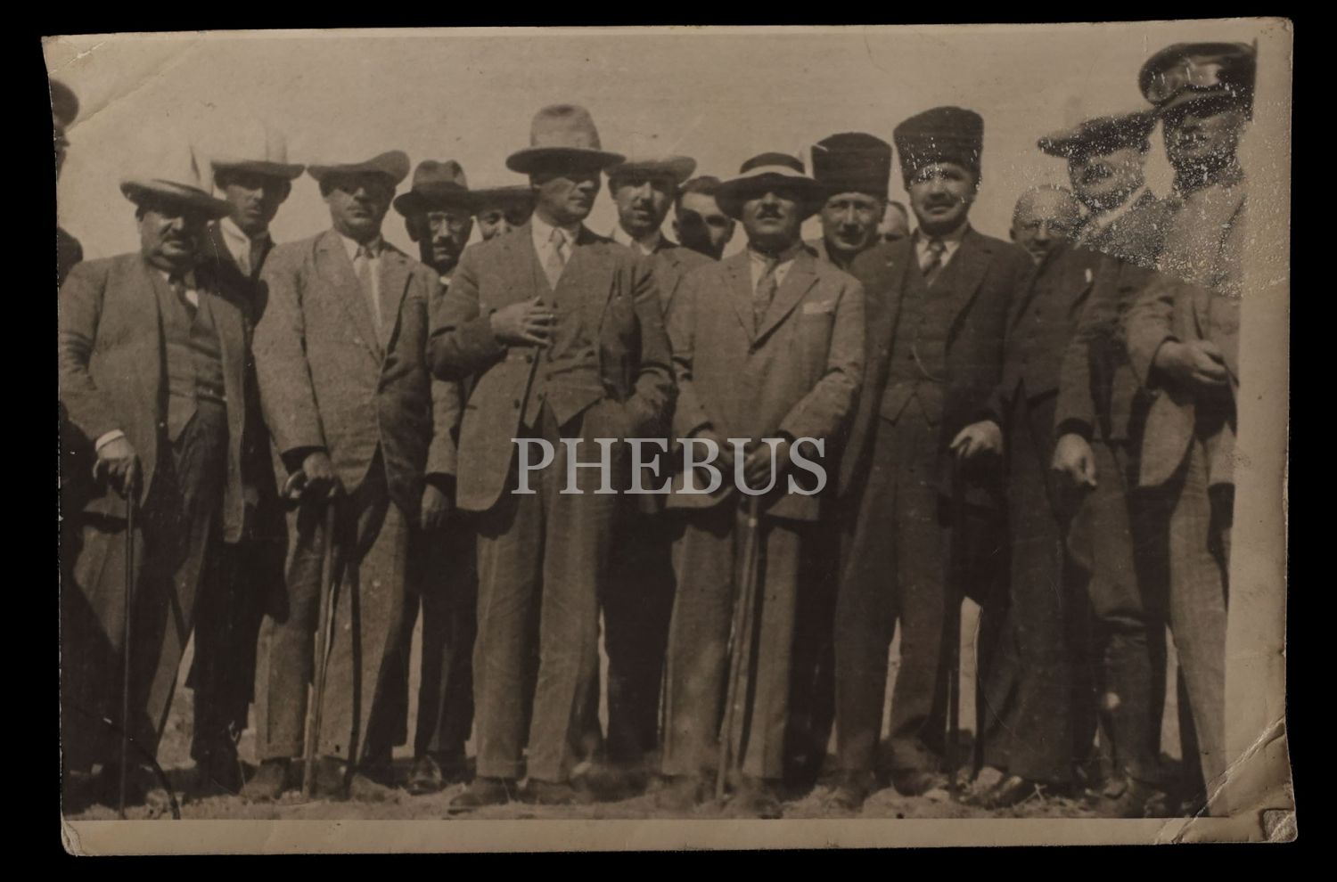 Mustafa Kemal Atatürk, şapka takmanın gereklerini dile getirdiği Kastamonu ziyareti dönüşünde, Kayaş´ta kendisini karşılayanlarla birlikte, 1 Eylül 1925, 18x12 cm...