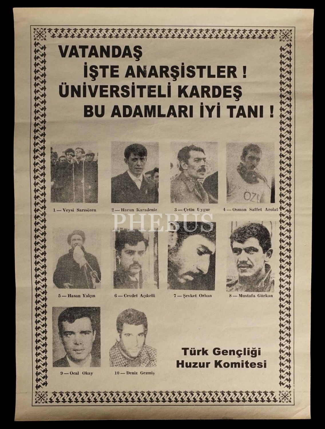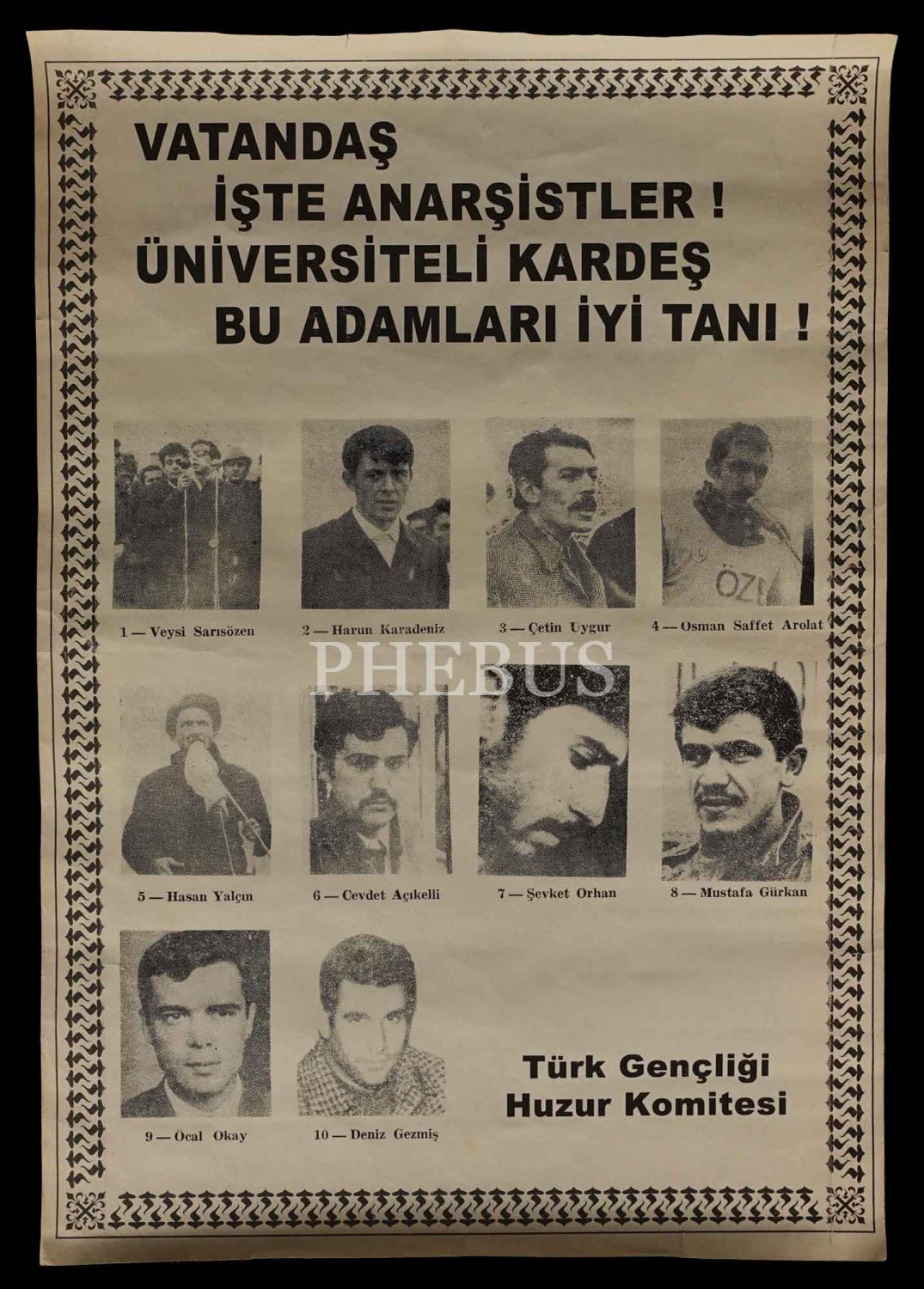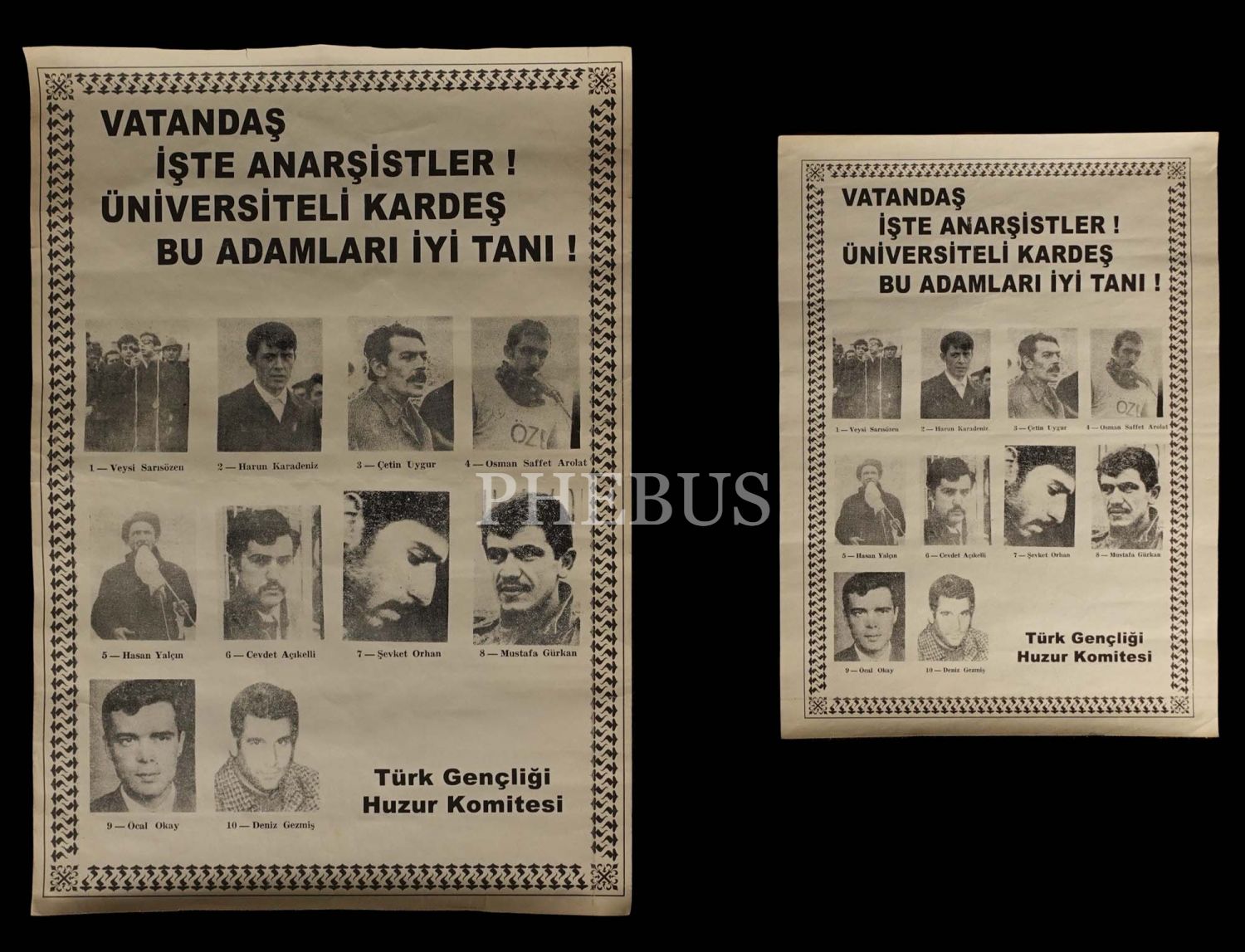 Türk Gençliği Huzur Komitesi´nin, aralarında Deniz Gezmiş´in de bulunduğu bir grup Solcuyu hedef gösterdiği propaganda afişi, iki adet, 28x40 cm, 21x28 cm...