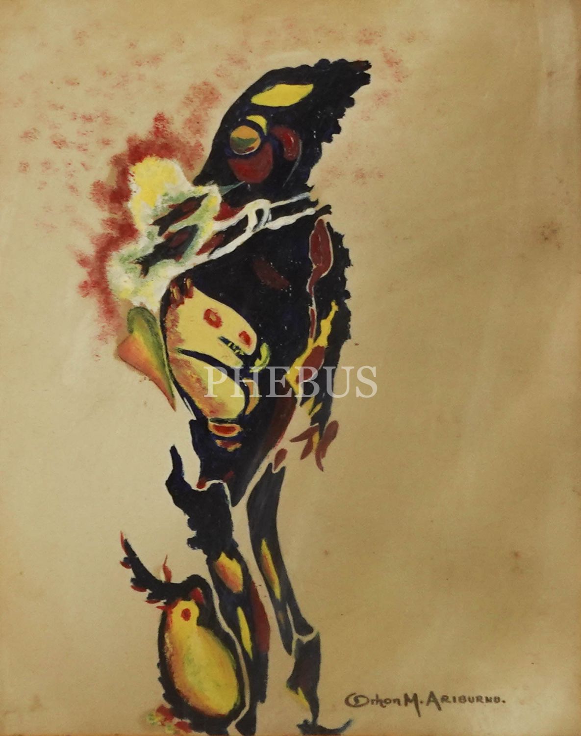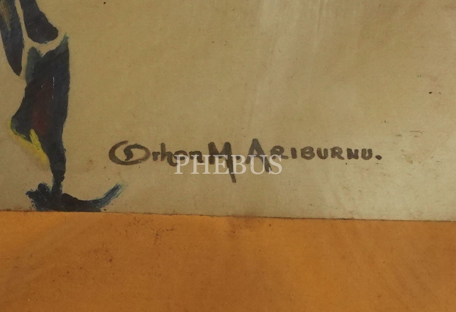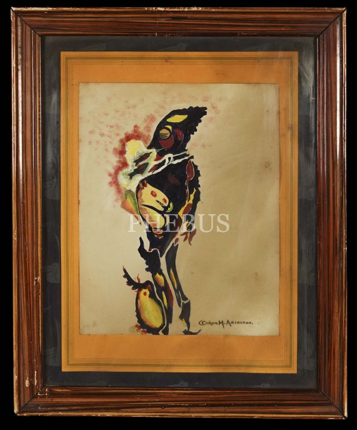 Şair, Senaryo Yazarı, Film Yönetmeni, Aktör Orhon Murat Arıburnu ıslak imzalı insan ve hayvan figürlerinin iç içe geçtiği yağlı boya çalışma, çerçevesiyle birlikte 28x34 cm...