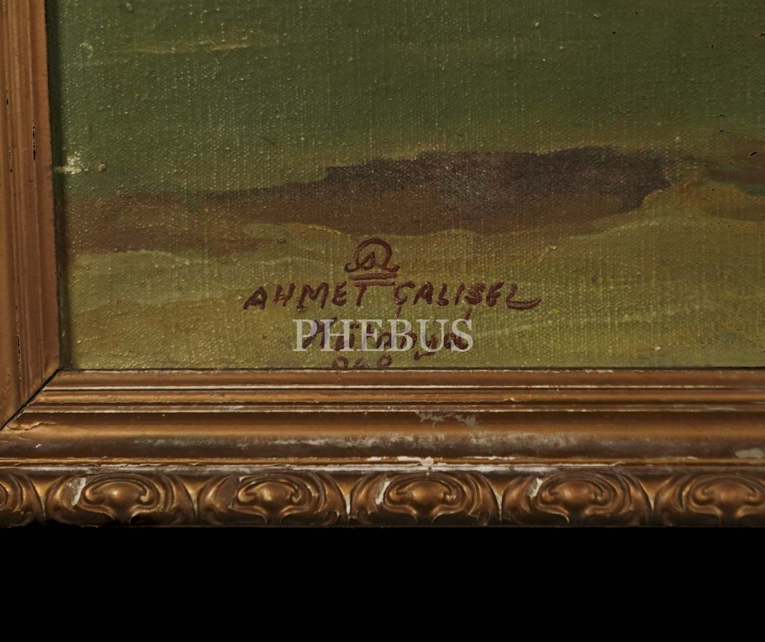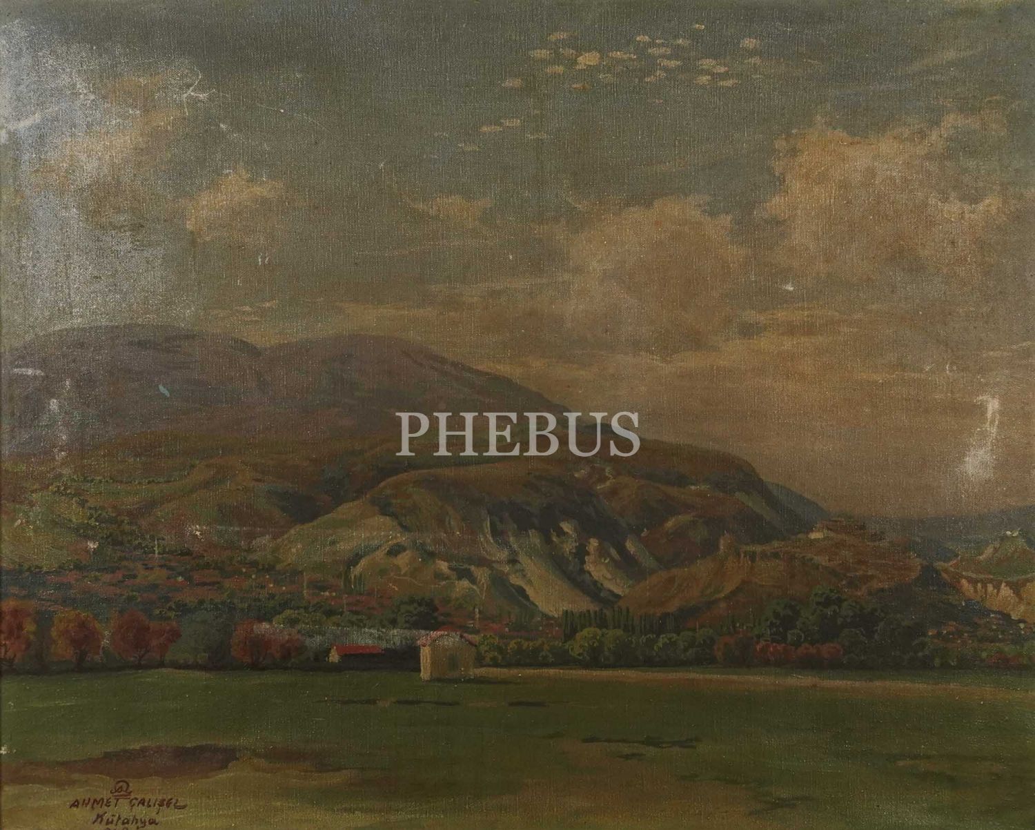 Ahmet Yakupoğlu [Çalışel] ıslak imzalı Kütahya´da dağ eteğinde kulübe yağlı boya çalışması, 1948, çerçevesiyle birlikte 60x72 cm...