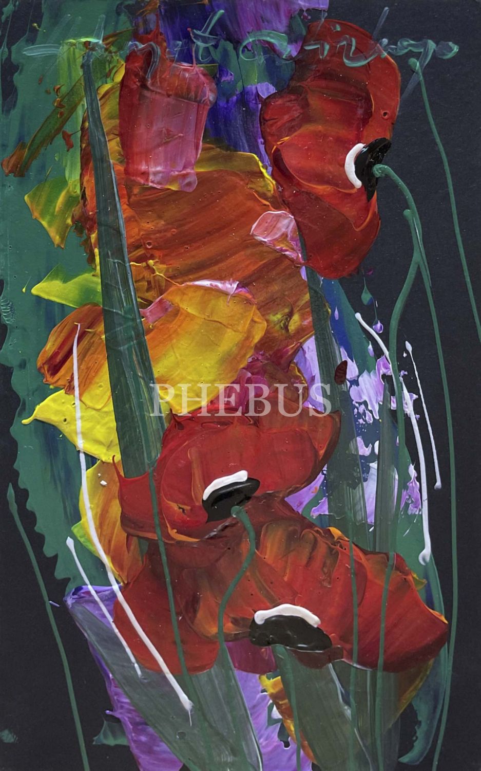 Hikmet Çetinkaya: "Gelincikler", karton üzeri akrilik, imzalı, 2023, en:15 cm / boy: 24 cm...