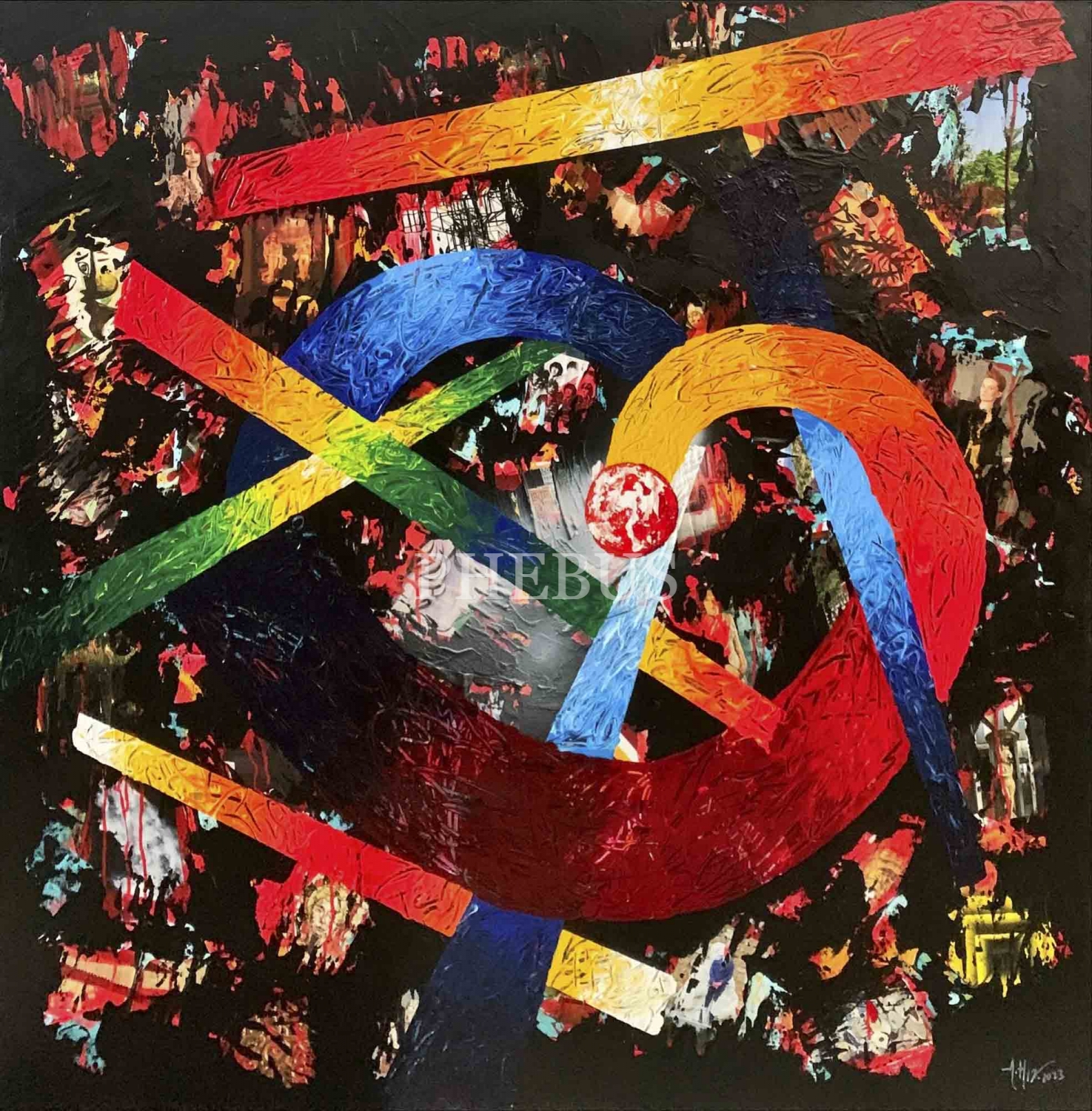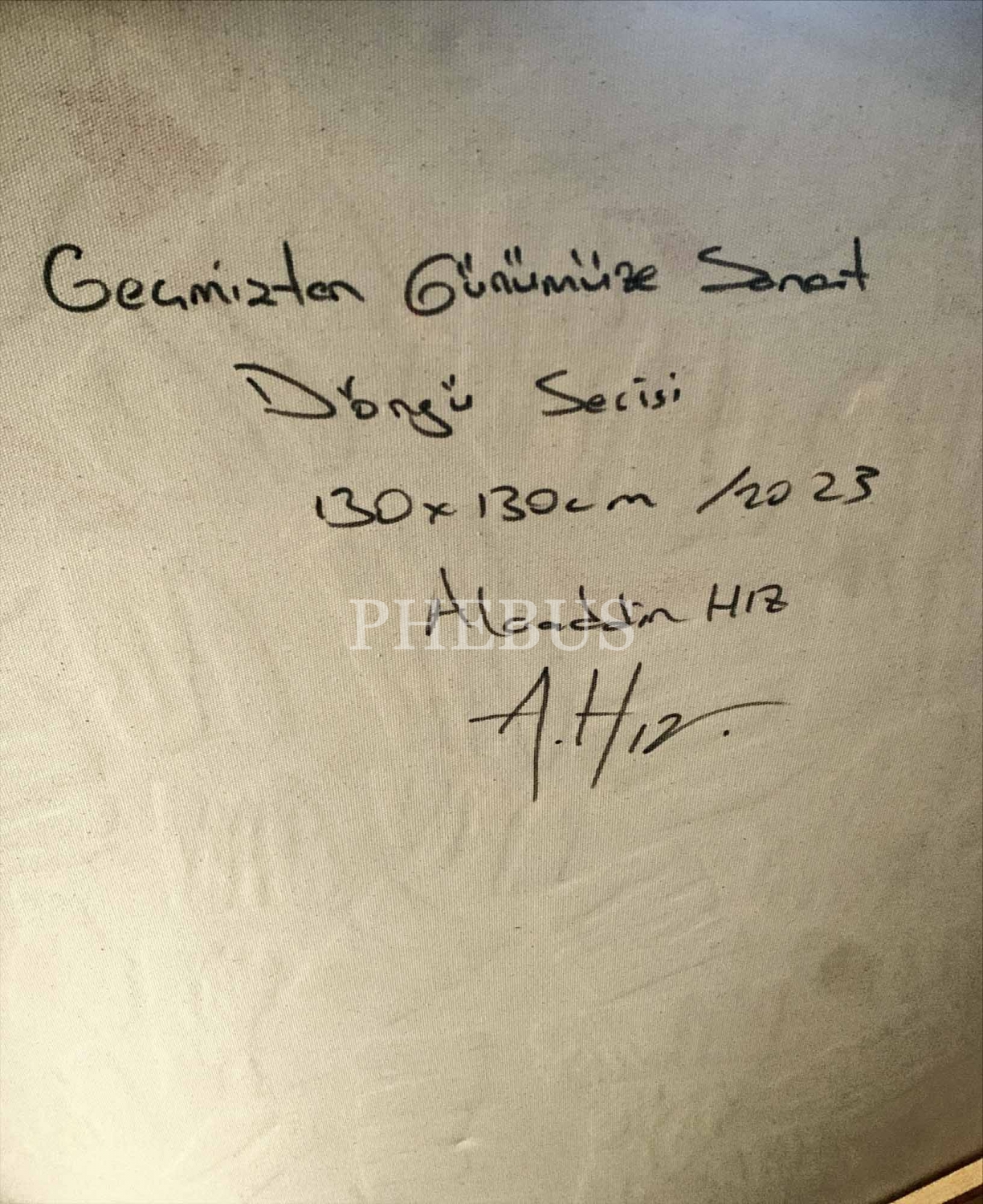 Alaaddin Hız: "Döngü Serisi", tuval üzeri akrilik çalışma, imzalı, 2023, 130x130 cm...