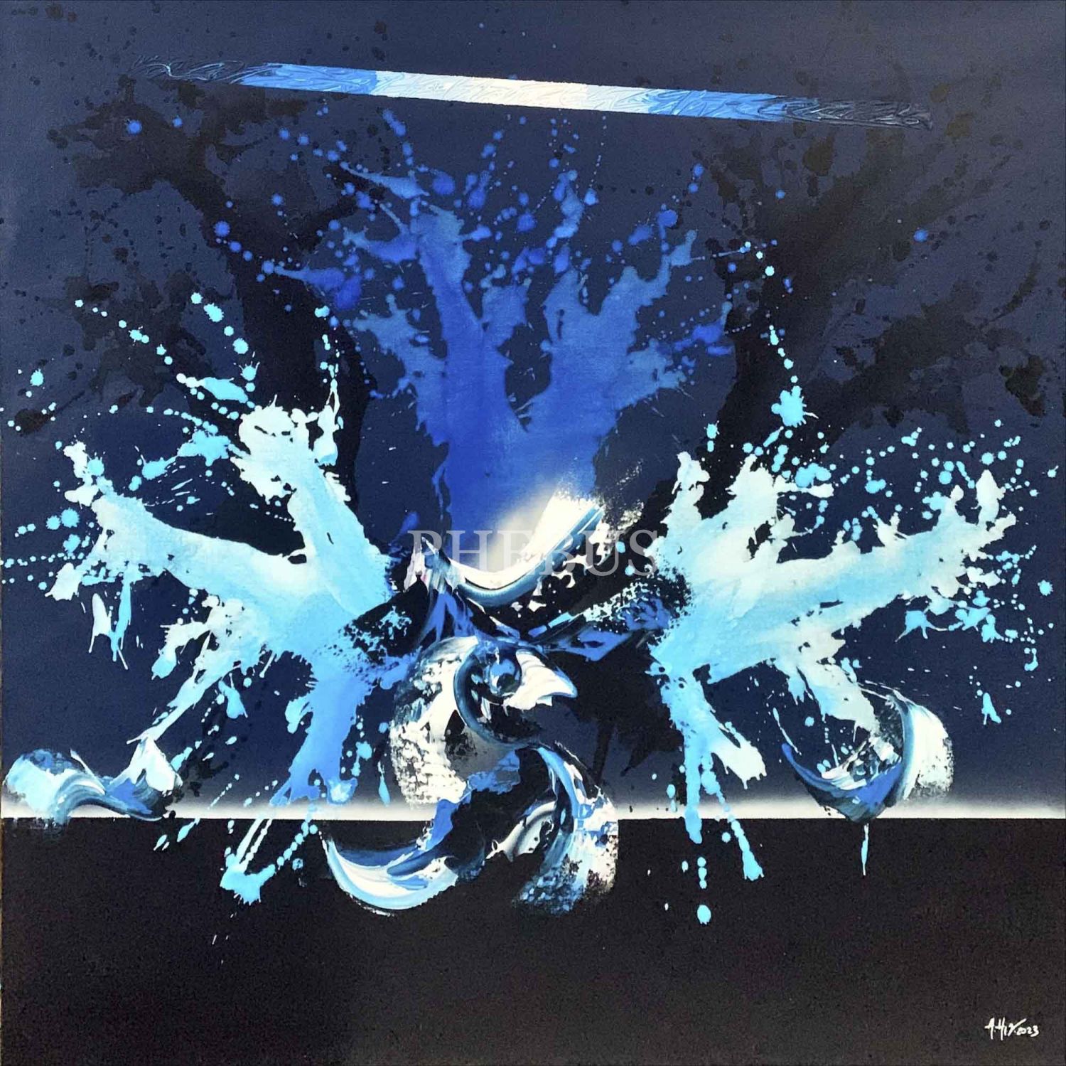 Alaaddin Hız: "Vertigo Serisi", tuval üzeri akrilik çalışma, 2023, imzalı, 130x130 cm...