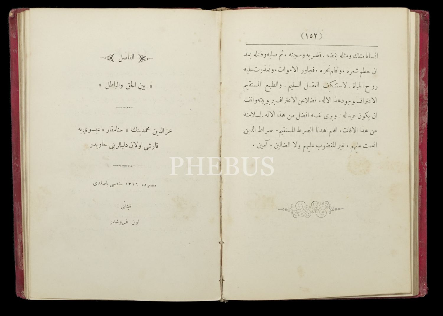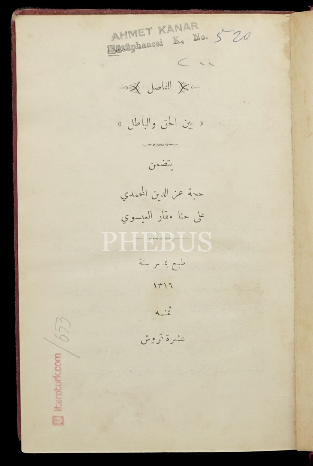 EL-FASIL BEYNE´L-HAK VE´L-BATIL, İzzeddin Mehmed [Yusuf Samih], (Çeviren: Esma ), 1316 Kahire, 152+244, 14x20 cm...