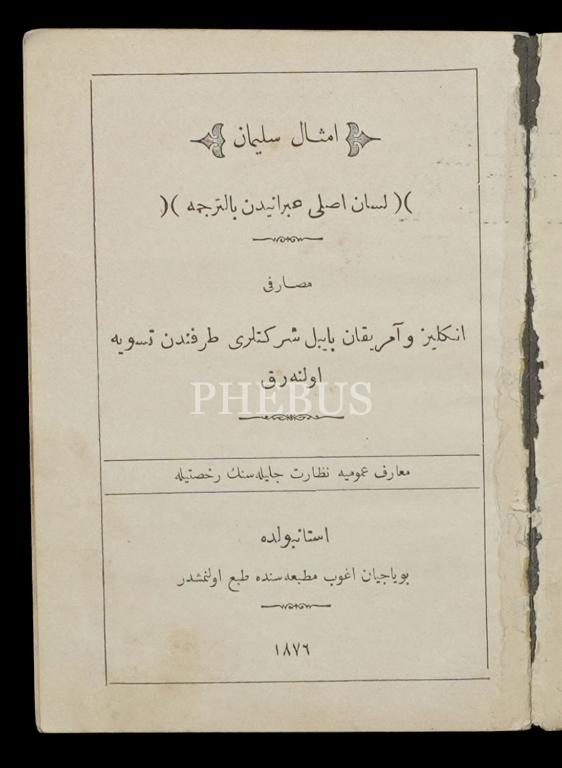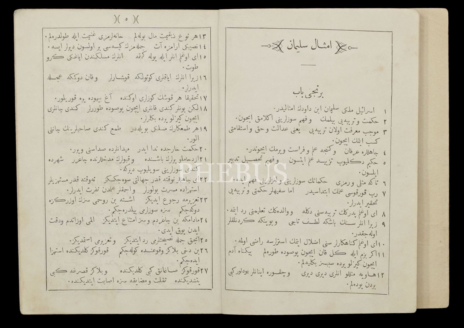 EMSÂL-İ SÜLEYMAN, 1876, Boyacıyan Agob Matbaası-İngiliz Kitab-ı Mukaddes Şirketi, 66 sayfa, 10x14 cm...