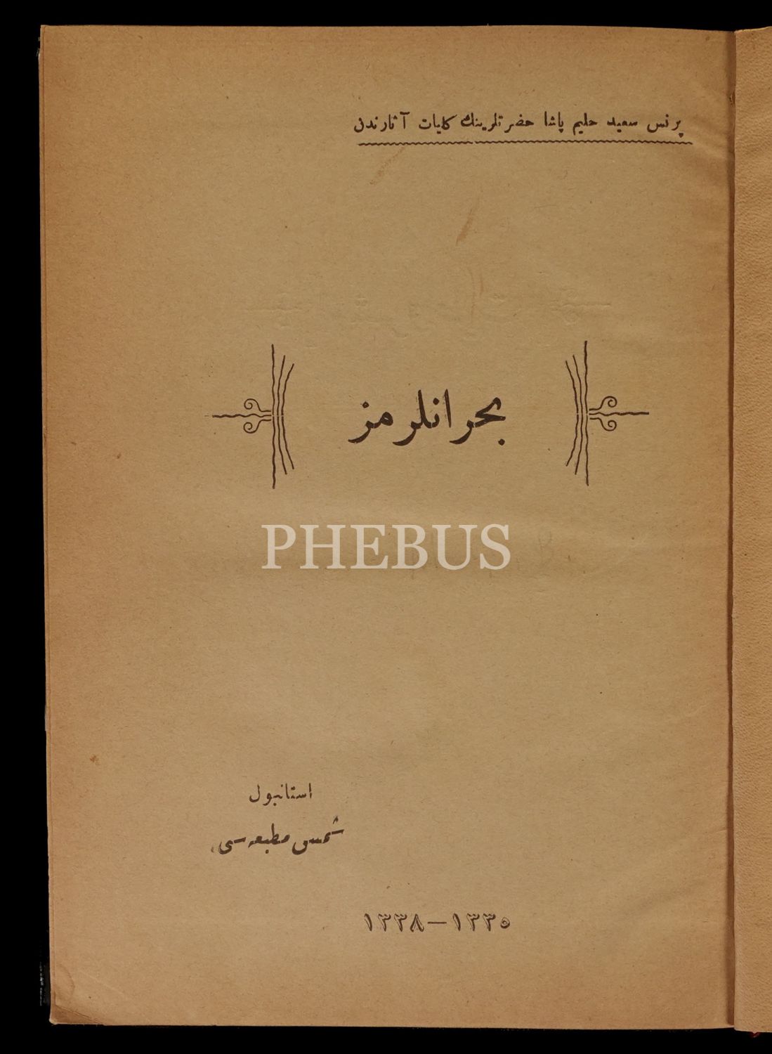 BUHRÂNLARIMIZ, Prens Mehmed Said Halim Paşa, 1338, Şems Matbaası, 183 sayfa, MÜTAREKE ACILARI (İstanbulda Mütareke arifesinden işgale kadar geçen kara günlerin acı hatıraları), 1930, Selamet Matbaası, 200 sayfa, 14x20 cm...