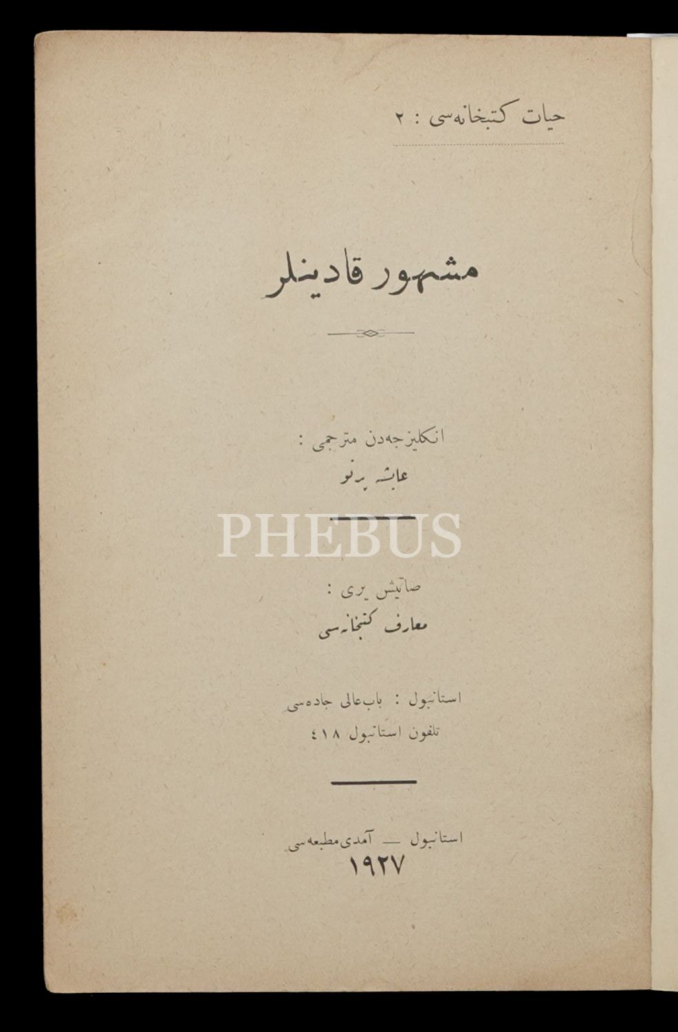 MEŞHUR KADINLAR, (Çeviren: Ayşe Pertev), 1927, Amedî Matbaası-Hayat Kitaphanesi No:2, 114 sayfa, 14x20 cm...