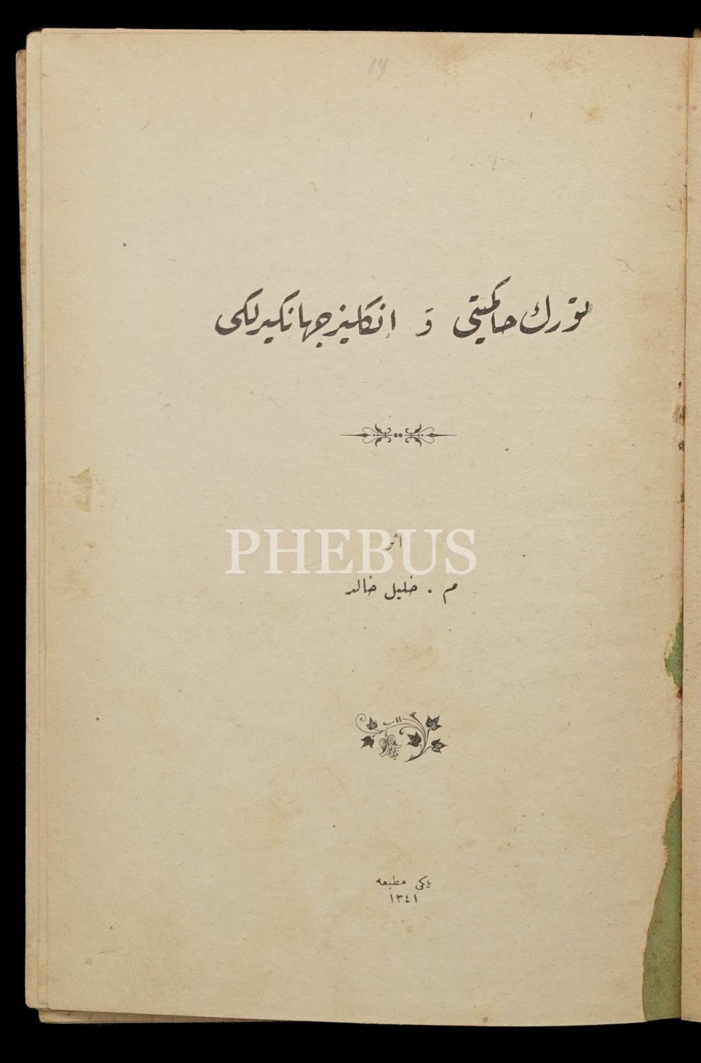 TÜRK HAKİMİYETİ VE İNGİLİZ CİHANGİRLİĞİ, Halil Halid, 1341, Yeni Matbaa, 99 sayfa, 14x20 cm...