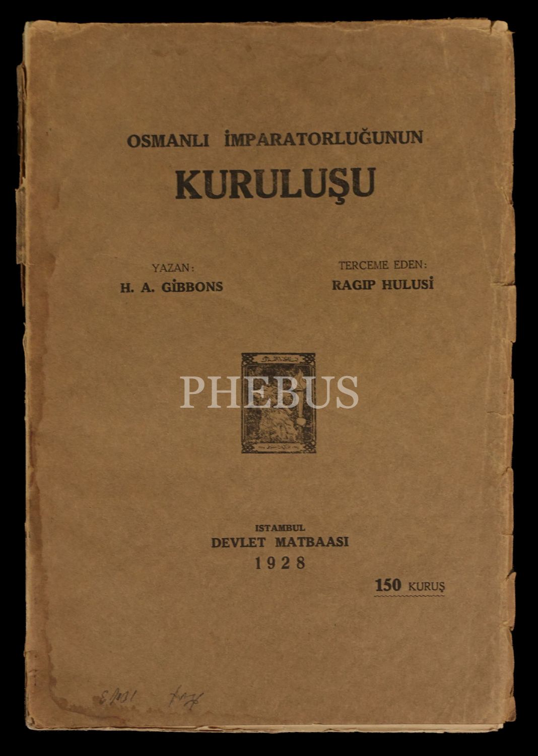 OSMANLI İMPARATORLUĞU KURULUŞU, Herbert Adams Gibbons, (Çeviren:Ragıp Hulusi), 1928, Devlet Matbaası, 281 sayfa, 18x26 cm...