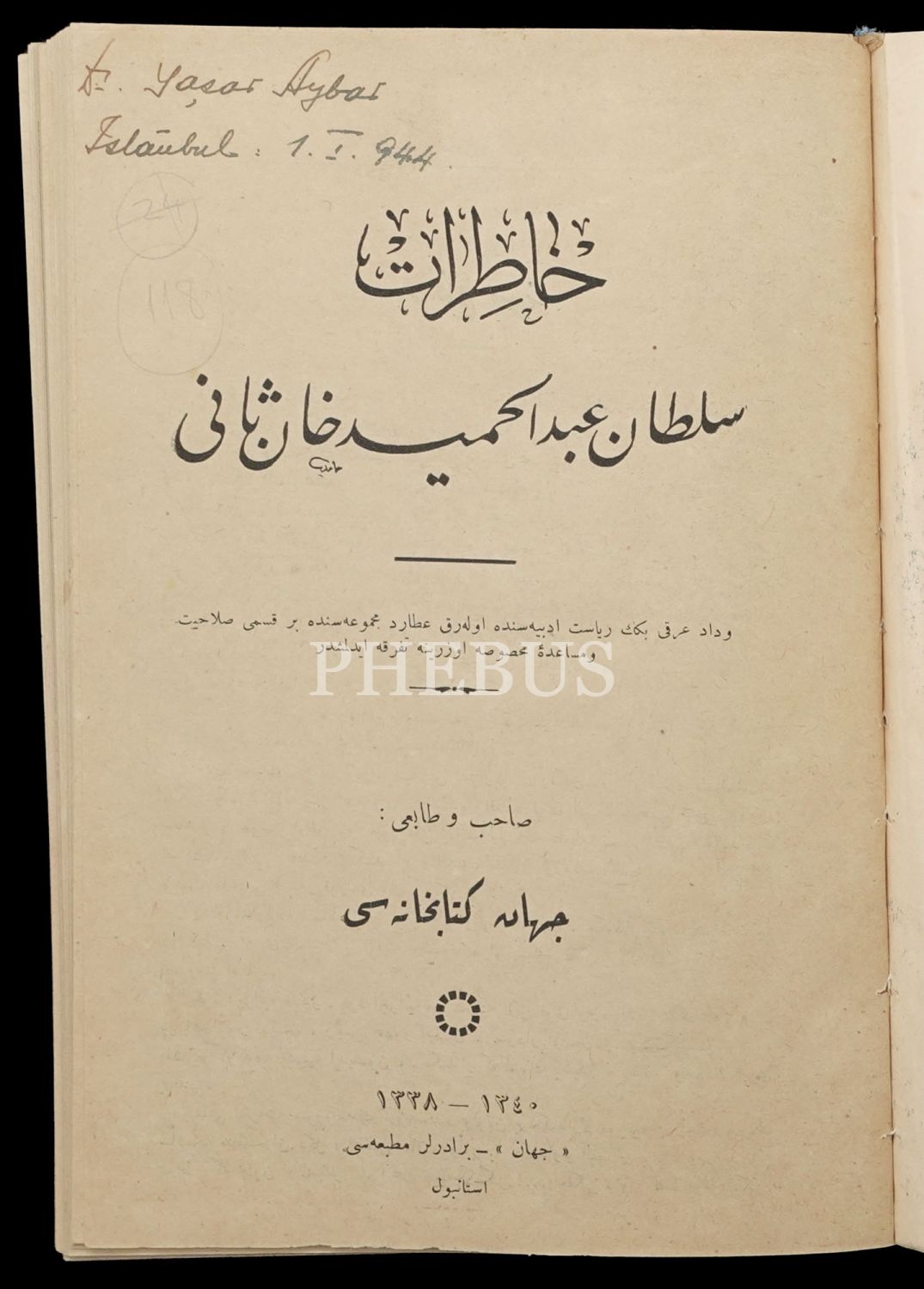 HÂTIRÂT-I SULTAN ABDÜLHÂMİD HAN-SÂNÎ, II. ABDÜLHAMİD, (1. Cüz), (Derleyen: Vedat Örfî [Bengü]), 1340, Cihan Matbaası-Cihan Kütübhanesi, 71 sayfa, 16x23 cm...