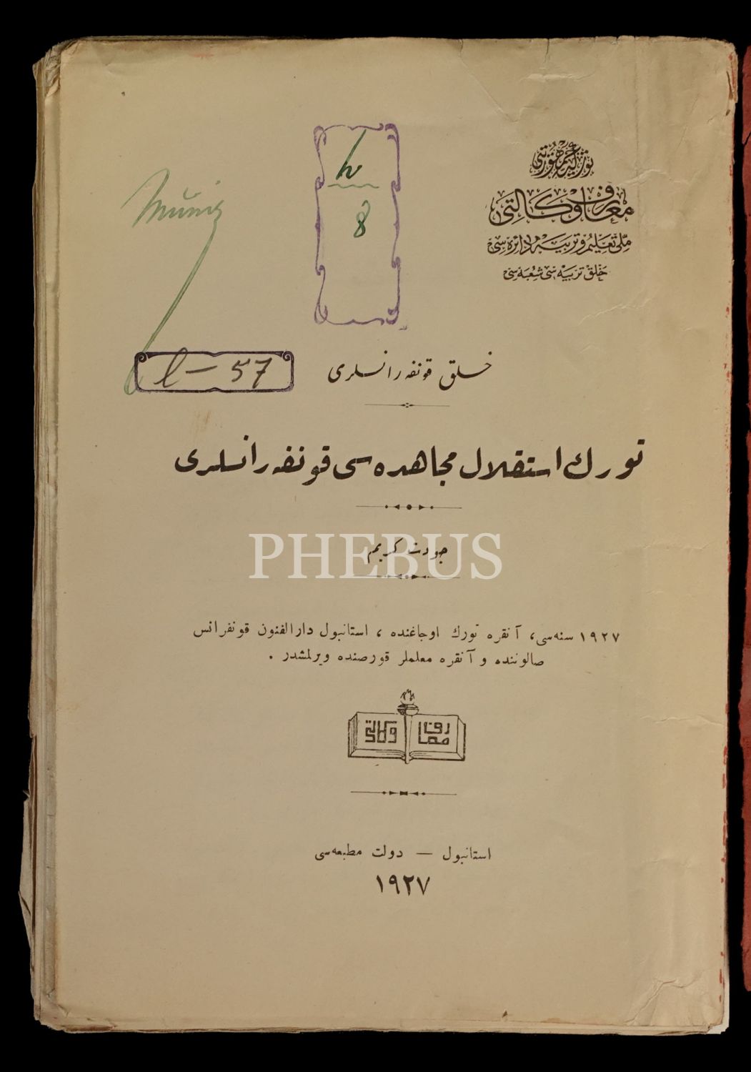 TÜRK İSTİKLÂL MÜCADELESİ KONFERANSLARI, Sinoblu Cevdet Kerim [İncedayı], 1927, Devlet Matbaası, Maarif Vekâleti Talim ve Terbiye Dairesi Halk Terbiyesi Şubesi Neşriyatı, 227 sayfa, 15x21 cm...