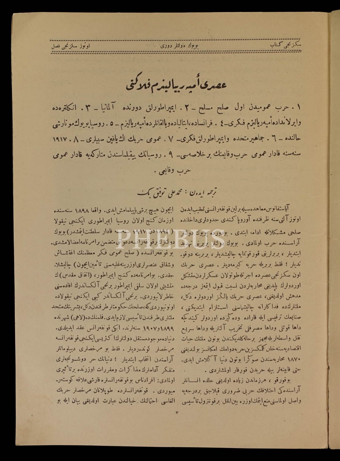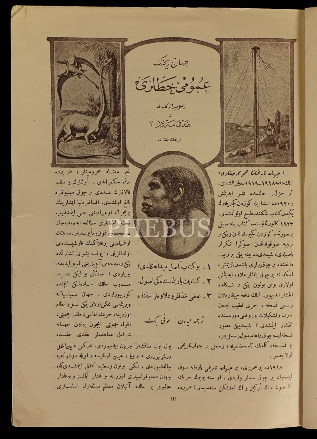 Cihan Tarihinin Umûmî Hatları adlı eser, 20. yüzyılın başlarında meydana gelen Cihan Harbinin toplumların ekonomik, sosyal ve siyasi yapısında meydana getirdiği büyük değişimin doğurduğu yeni ulusların uluslararası münâsebetlerini anlatmaktadır.