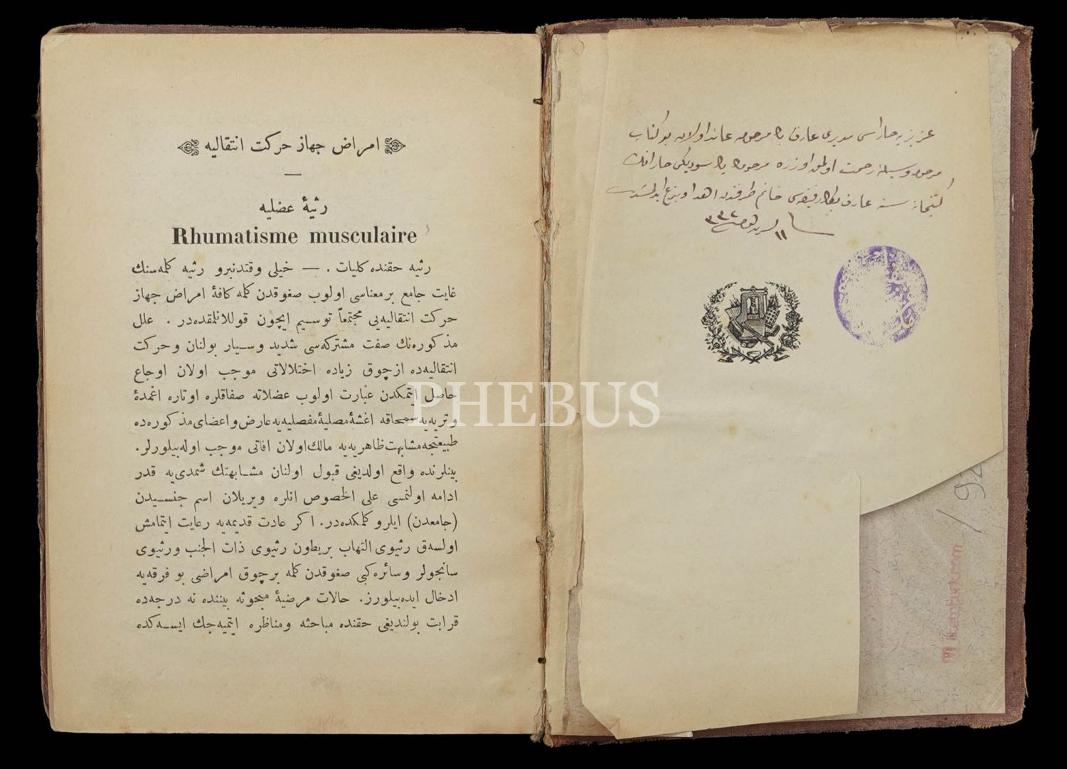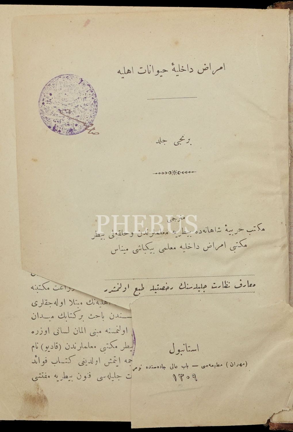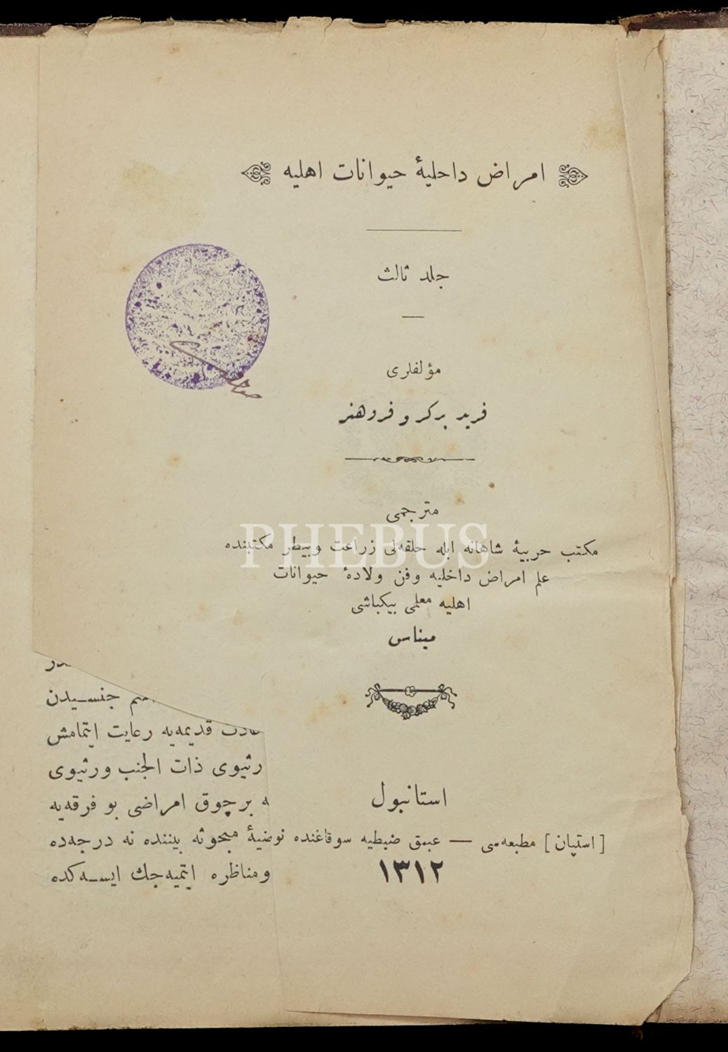 Mekteb-i Harbiye-i Şahane ile Mülkiye Baytar Mektebinde muallim binbaşı Minas tarafından çevrilmiştir. Dönem cildinde, künye sayfalarının alt köşelerinde metne ulaşmayan kesik mevcuttur.