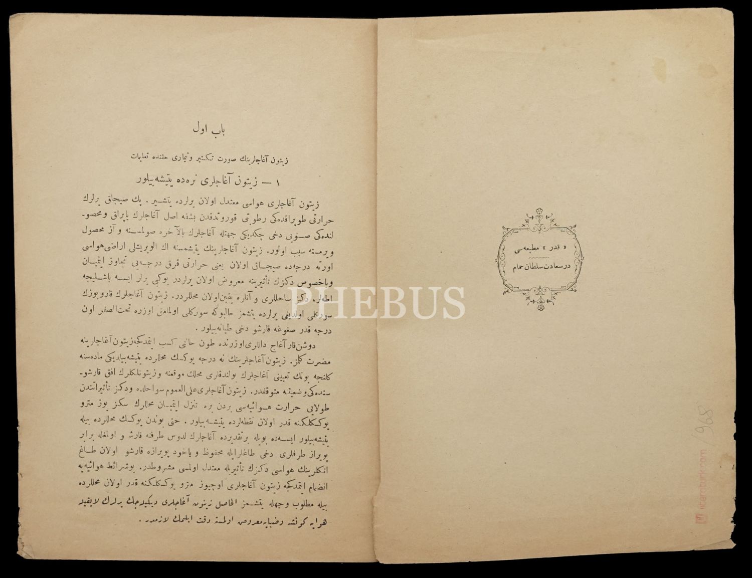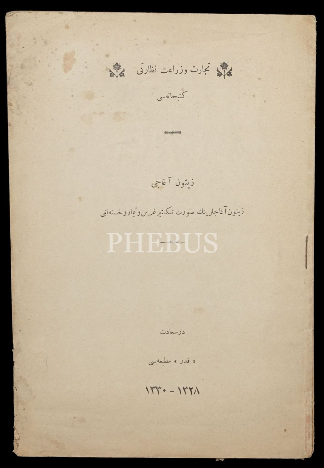 ZEYTİN AĞACI (Zeytin Ağaçlarının Sûret-i Teksir, Gars ve Tımar ve Hastalığı), 1330, Kader Matbaası, 24 sayfa, 16x24 cm...