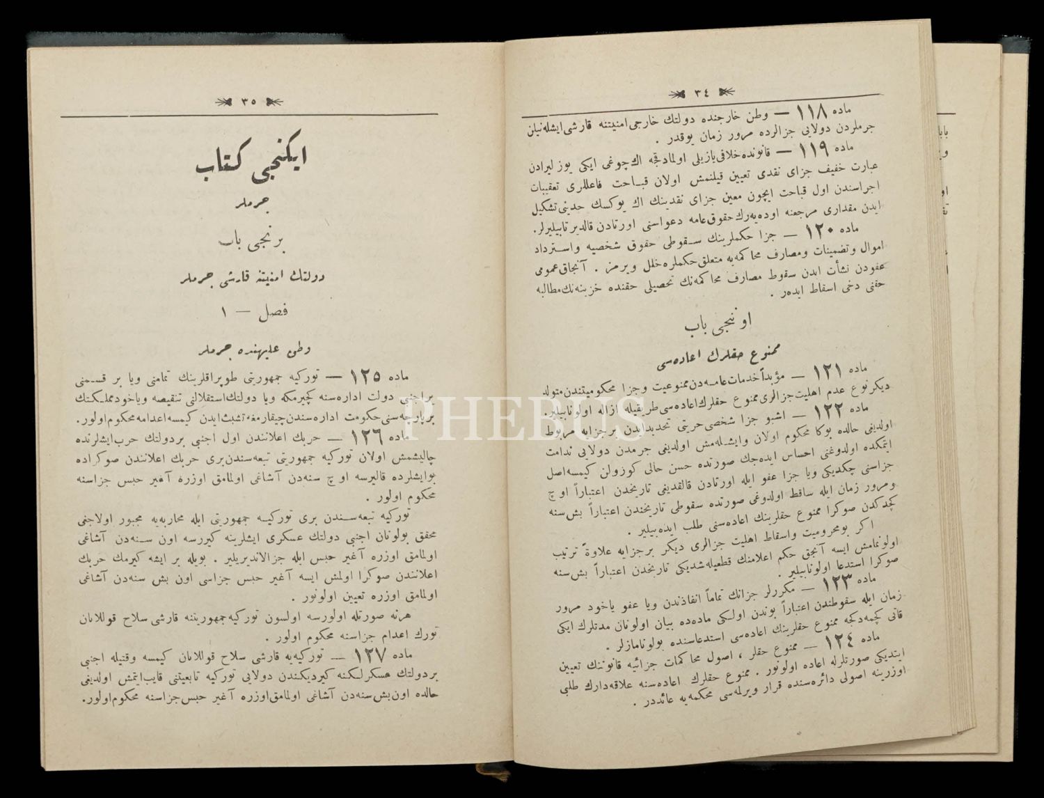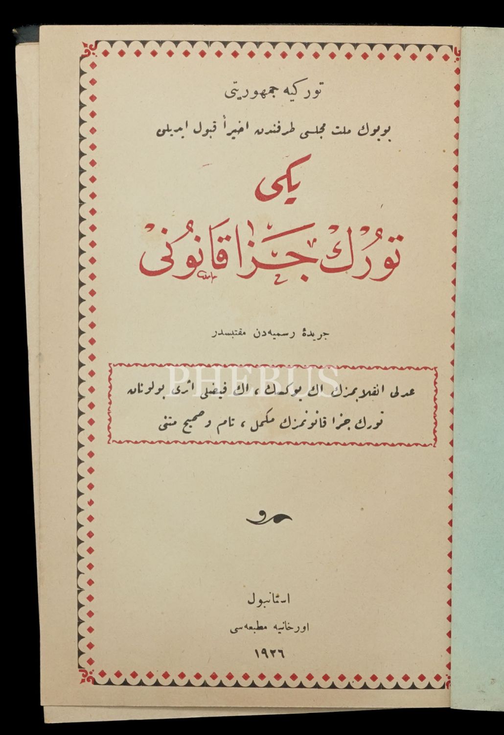 (Türkiye Cumhuriyeti Büyük Millet Meclisi Tarafından Âhiren Kabul Edilen) YENİ TÜRK CEZA KANUNU, 1926, Orhaniye Matbaası, 144 sayfa, 14x20 cm...