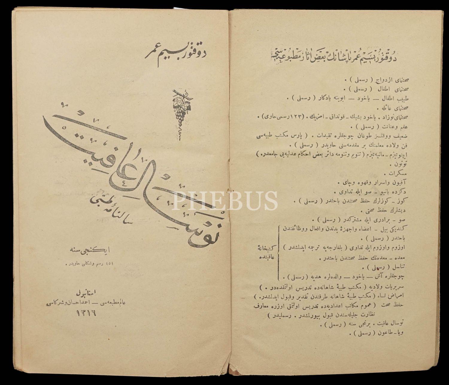 NEVSÂL-İ AFİYET (Sâlnâme-i Tıbbî) 2. Sene, Besim Ömer [Akalın], 1316, Âlem Matbaası Ahmed İhsan ve Şürekâsı, 514 sayfa, 13x21 cm...