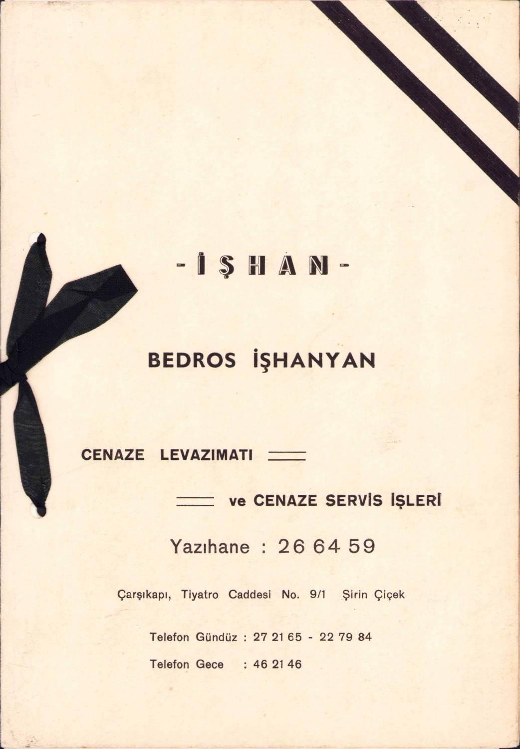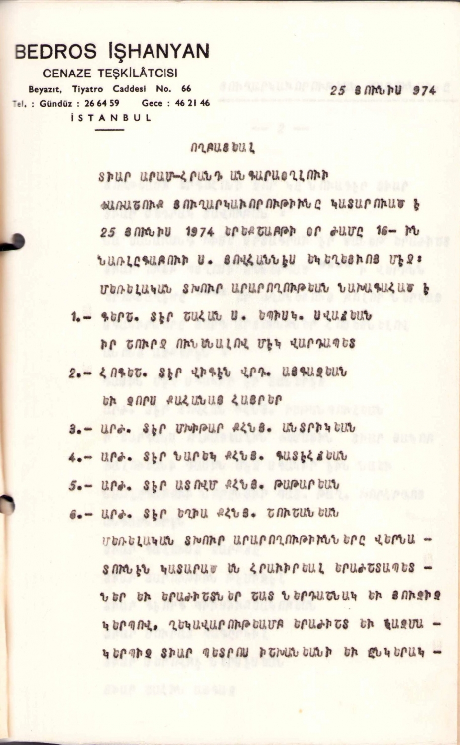 İşhan, Bedros İşhanyan - cenaze levazımatı ve cenaze servis işleri anteli Ermenice yazılı doküman, 22 sayfa, 15x22 cm