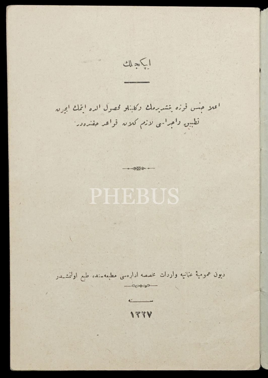İPEKCİLİK, 1327, Düyûn-u Umûmiye-i Osmaniye Varidât-ı Muhassasa İdare-i Merkeziyesi Matbaası, Düyun-i Umûmiye-i Osmaniye İdaresi, 22 sayfa, 14x20 cm...