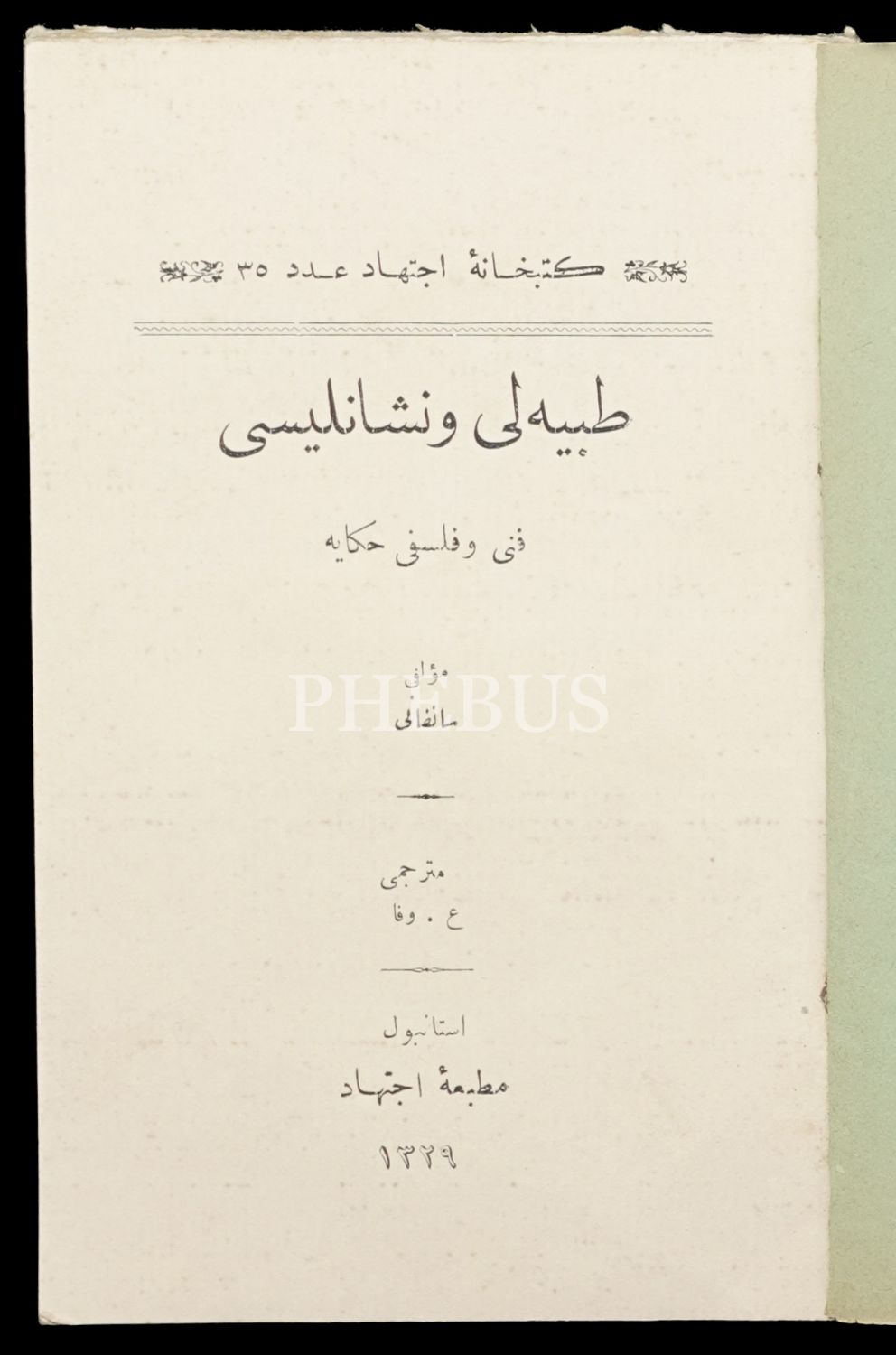 TIBBİYELİ VE NİŞANLISI, Sanfani, (Çeviren: A. Vefa), 1329, Matbaa-i İctihad, Kütübhane-i İcdihad:35, 64 sayfa, 12x19 cm...