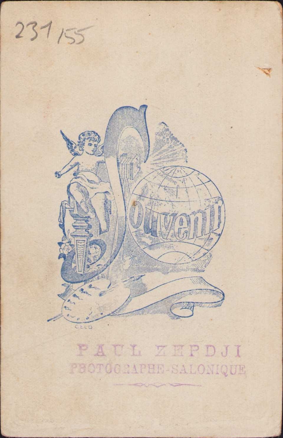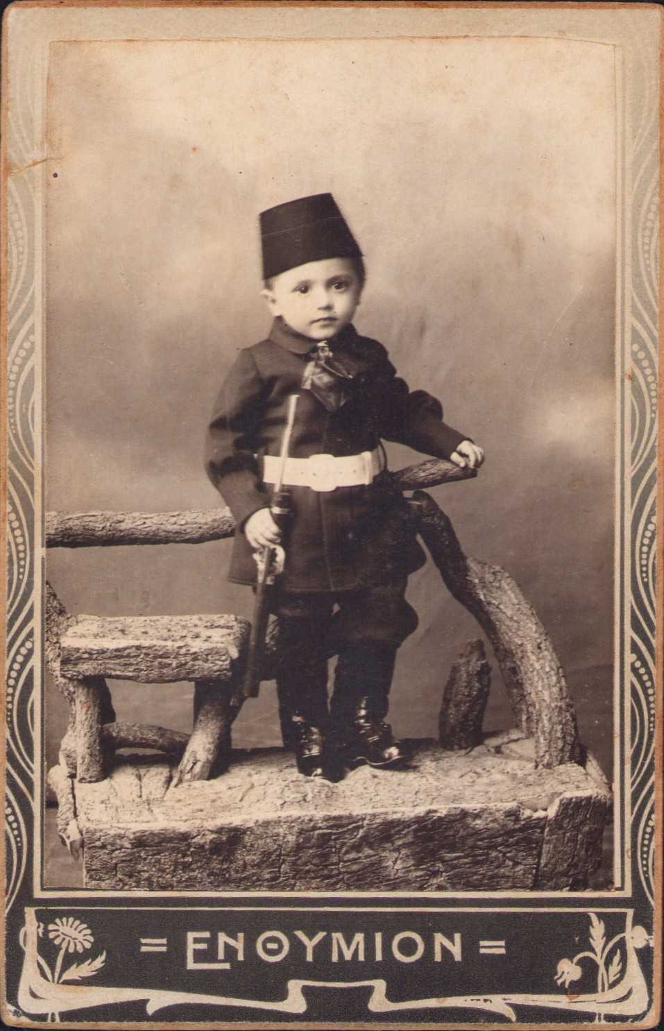 Photo Paul Zepdji kabin fotoğrafı,fesli üniformalı Osmanlı çocuk, Selanik, 8x12 cm