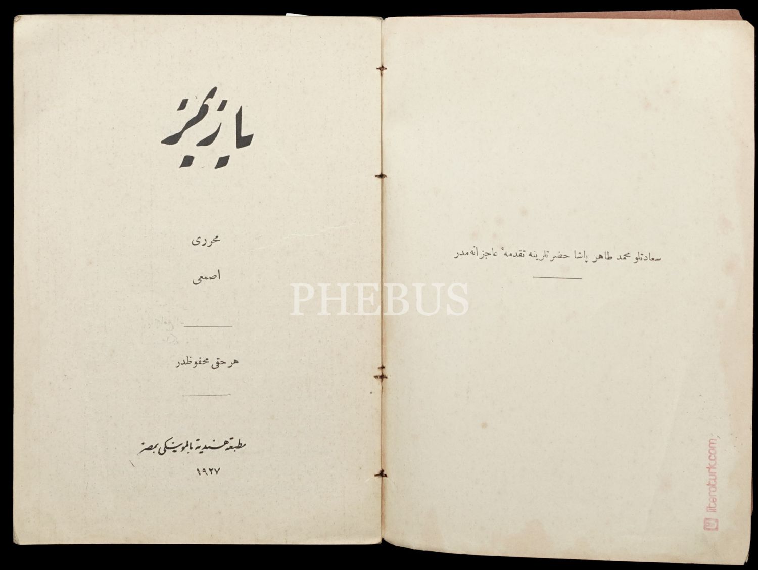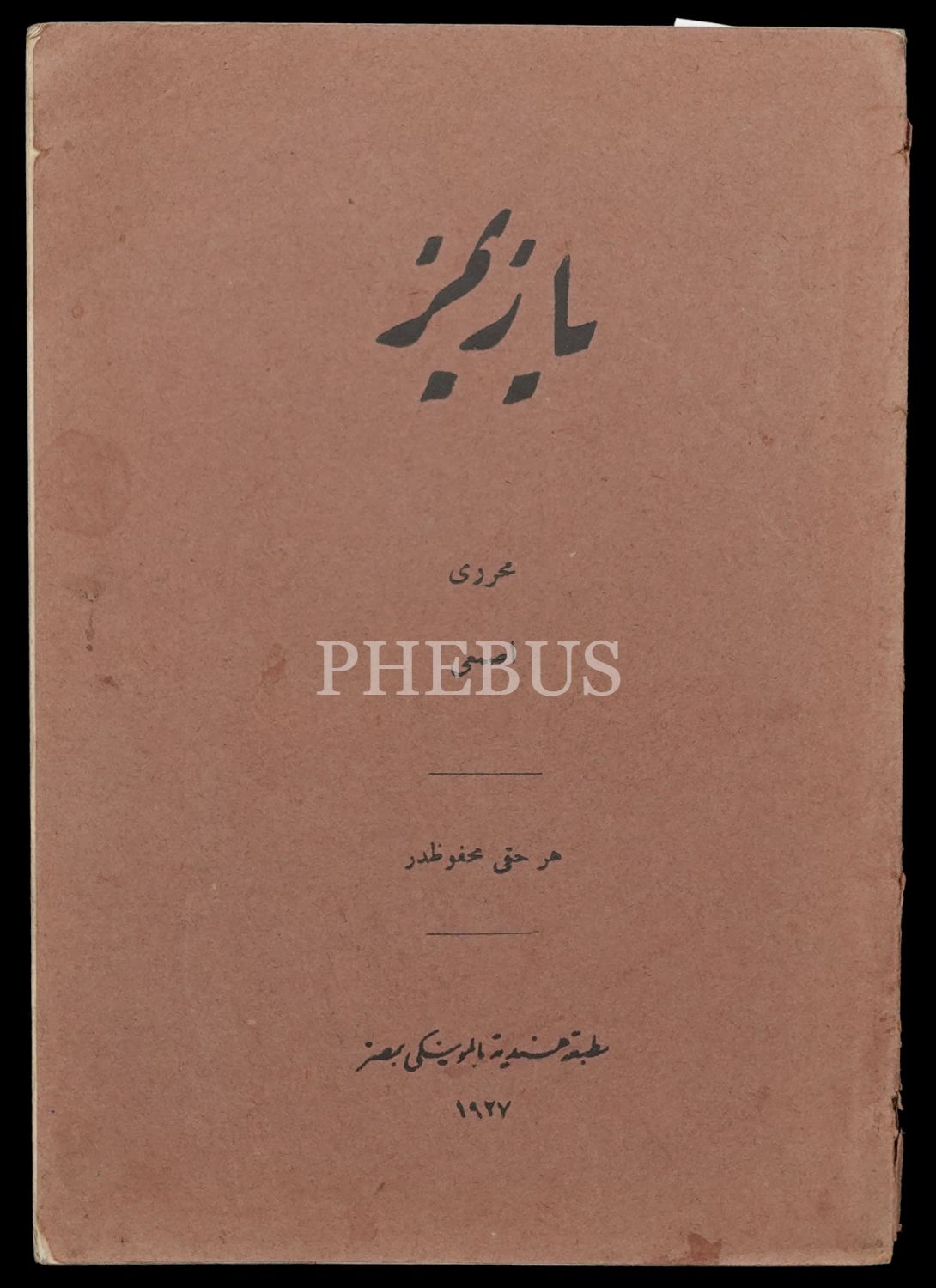 YAZIMIZ, Asmaî [Yusuf Samih], Matbaa-i Hindiyye, 1927 Mısır, 68 sayfa, 14x20 cm