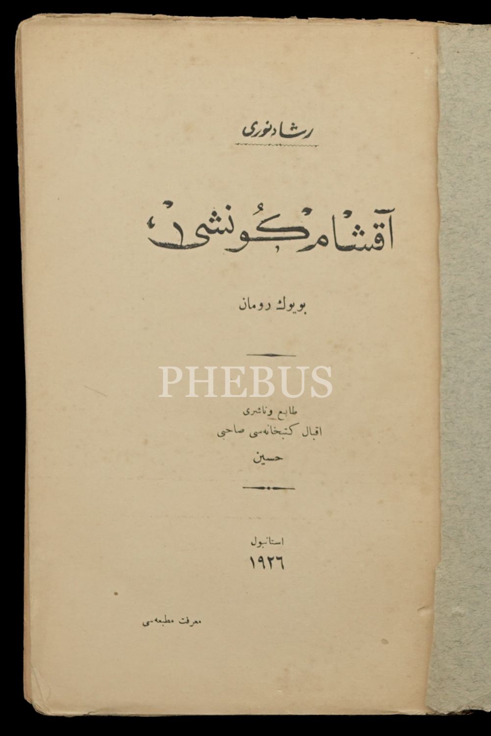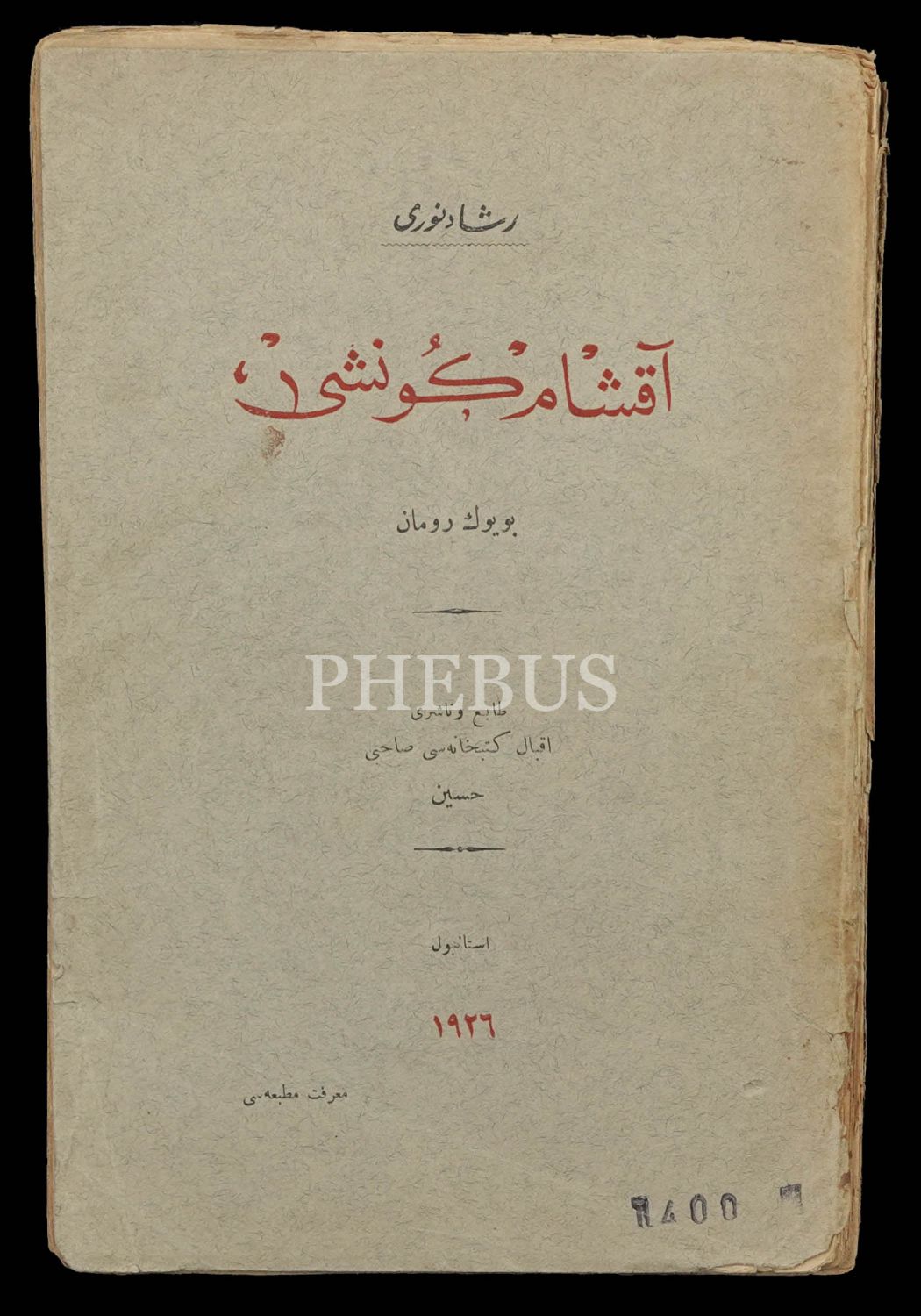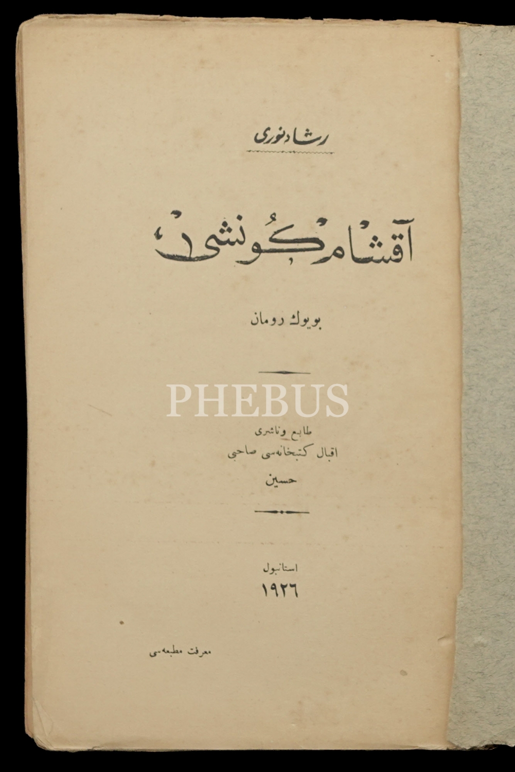 AKŞAM GÜNEŞİ, Reşad Nuri [Güntekin], Marifet Matbaası, 1928, 408 sayfa, 15x23 cm