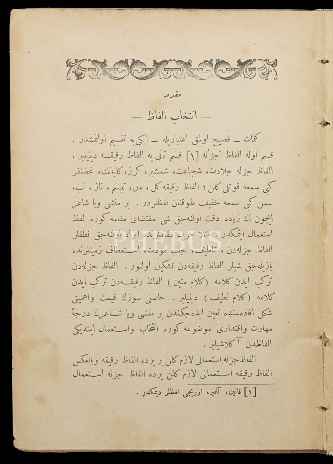 Orijinal cildinde şahıs damgası ve ´Librairie Militaire İslam´ ve sülüs hatla yazılı ´Kütübhane-i İslam Askeri´ mührü mevcuttur. Kitap sırttan ayrılmıştır.