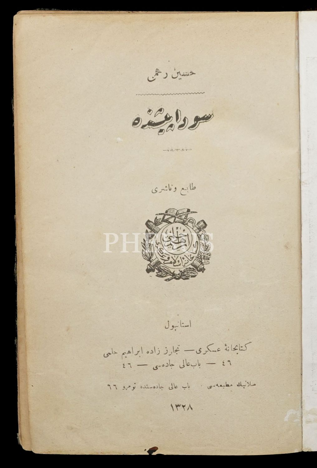 SEVDA PEŞİNDE, Hüseyin Rahmi (Gürpınar), 1328, Selanik Matbaası, 467 sayfa, 13x18 cm...