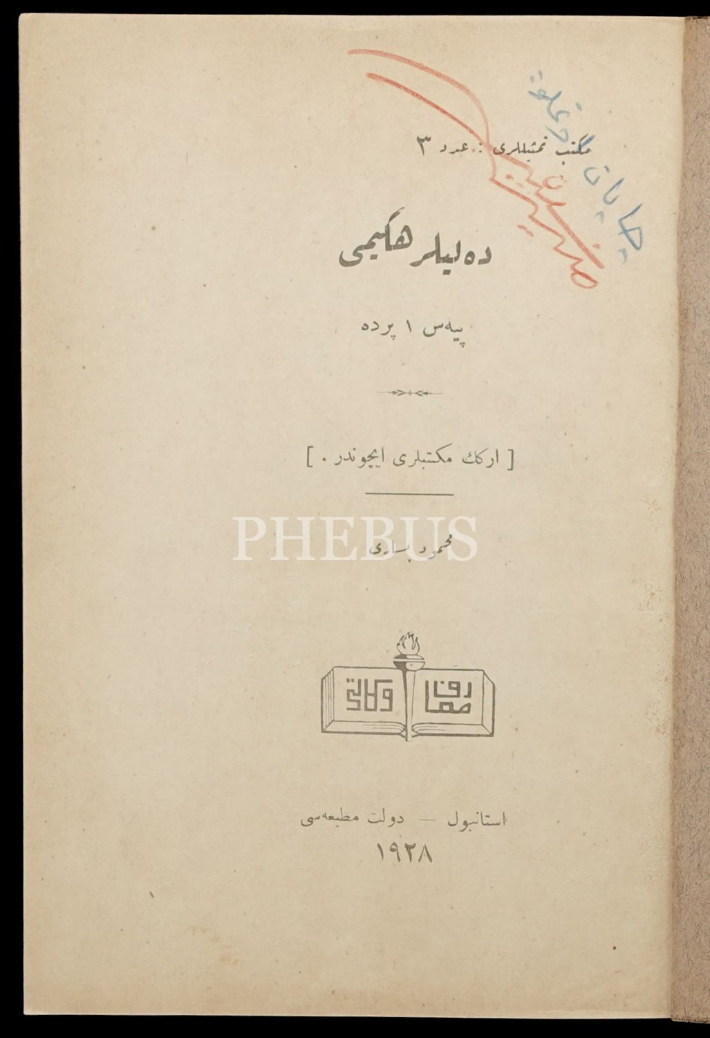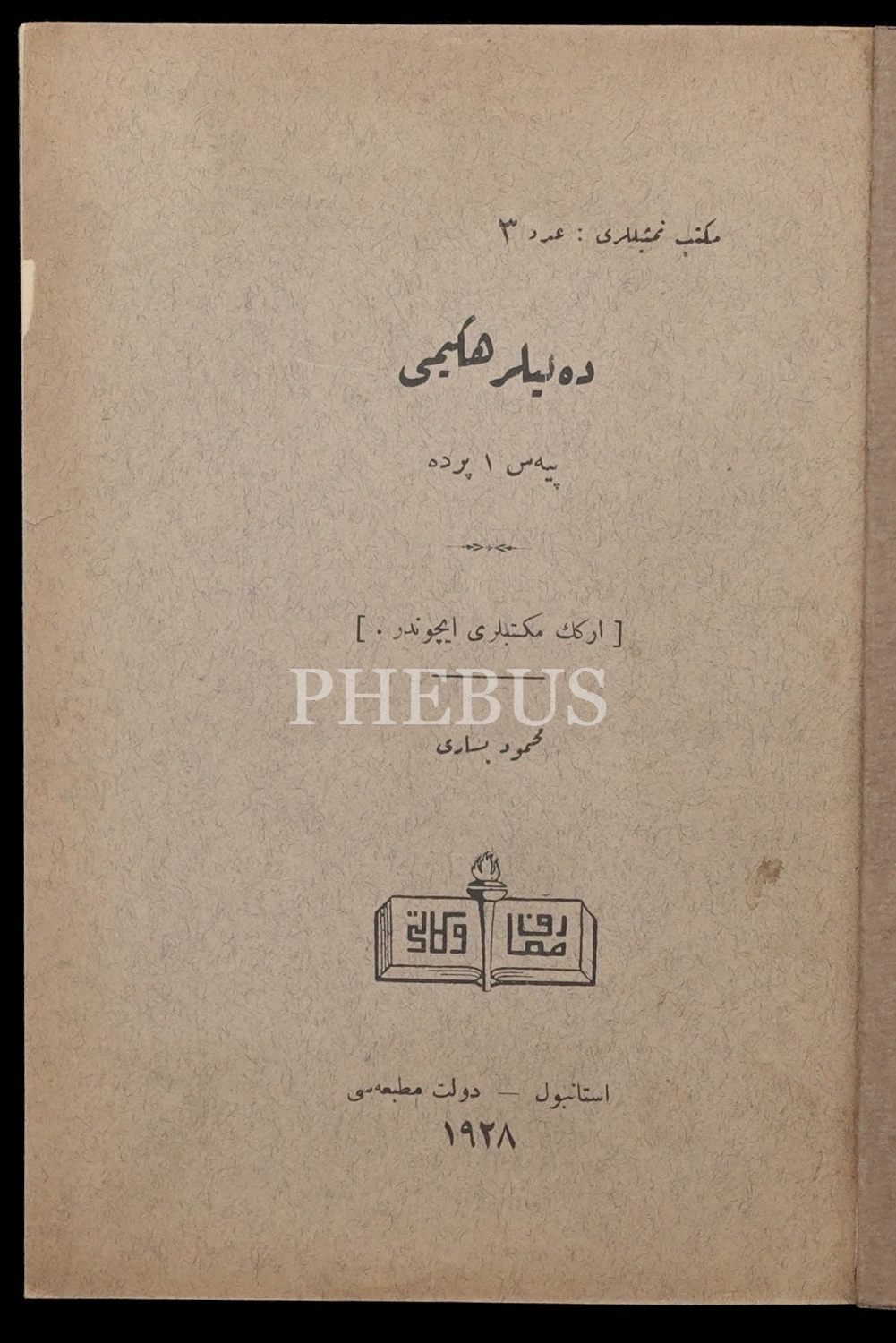 DELİLER HEKİMİ, (Erkek Mektepleri İçindir), Mahmud Esad, 1928, Devlet Matbaası, Maarif Vekâleti, 21 sayfa, 15x20 cm...