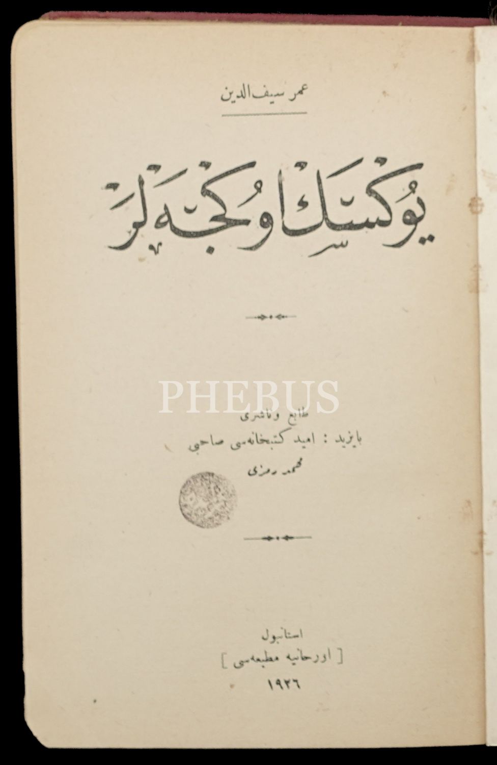YÜKSEK ÖKÇELER, Ömer Seyfeddin, 1926, Orhaniye Matbaası, Ümid Kütübhanesi Sahibi Mehmed Remzi, 159 sayfa, 14x20 cm...