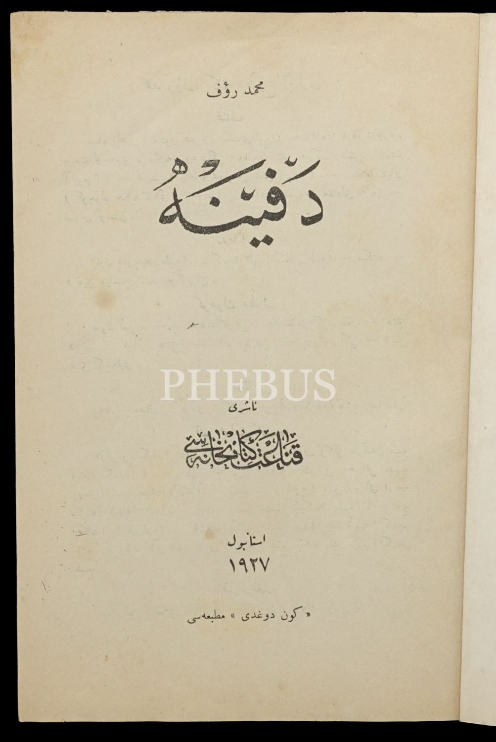 DEFİNE, Mehmed Rauf, 1927, Gündoğdu Matbaası, Kanaat Kitabhanesi, 142 sayfa, 14x20 cm...
