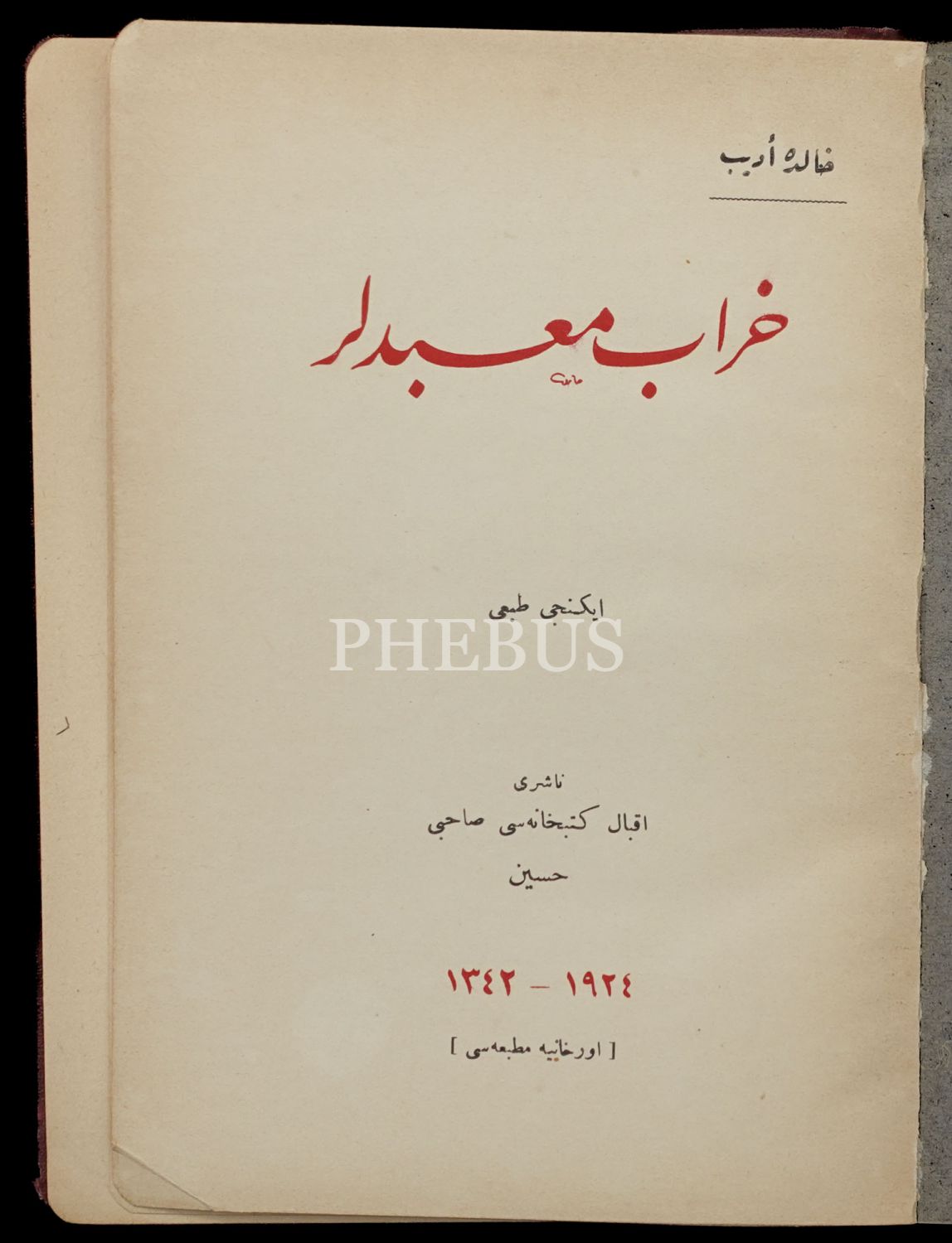 HARAB MABEDLER, (Mensur Şiirler), Halide Salih [Halide Edip Adıvar], 1924, Orhaniye Matbaası, İkbal Kütübhanesi Sahibi Hüseyin, 173 sayfa, 14x20 cm...