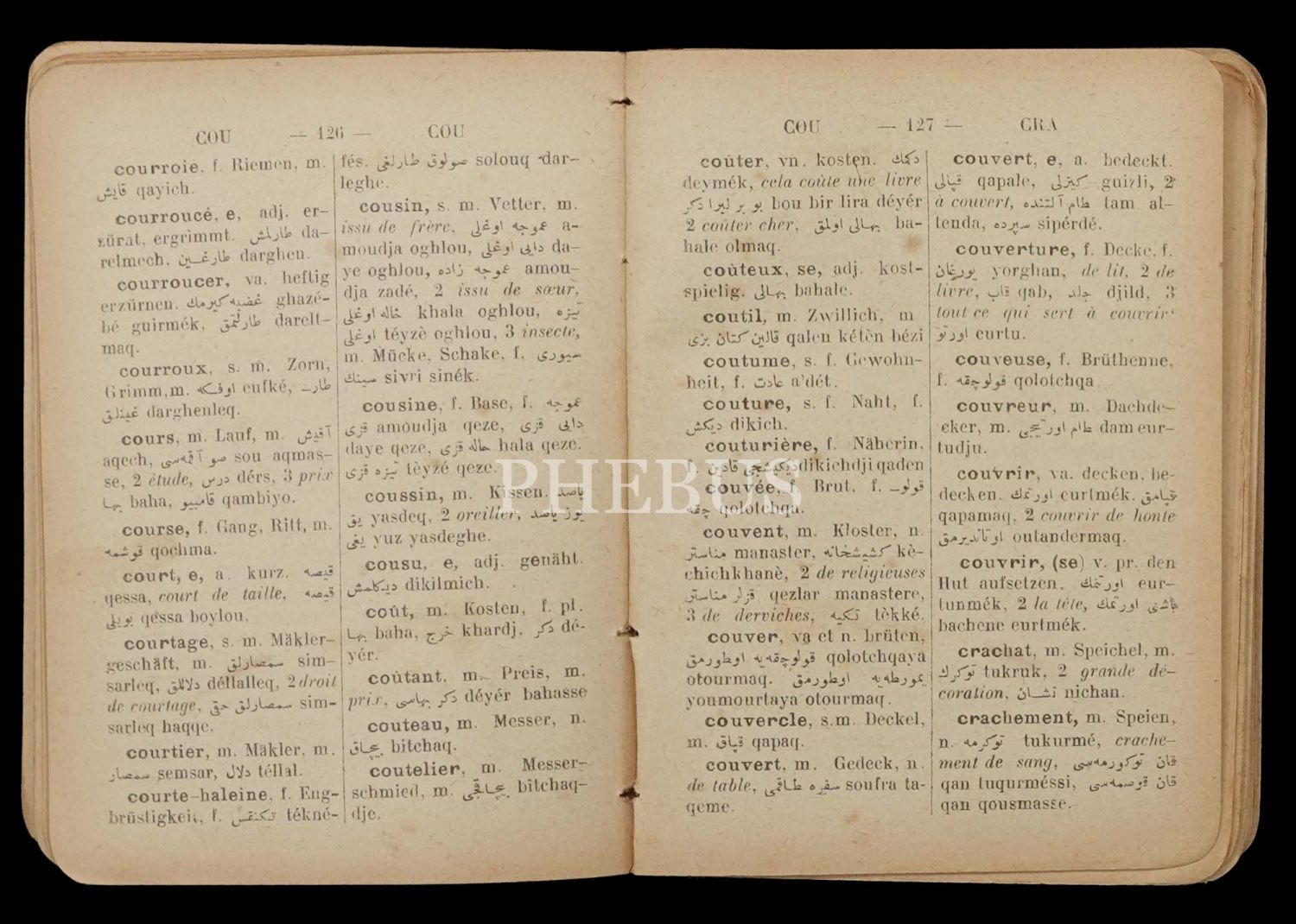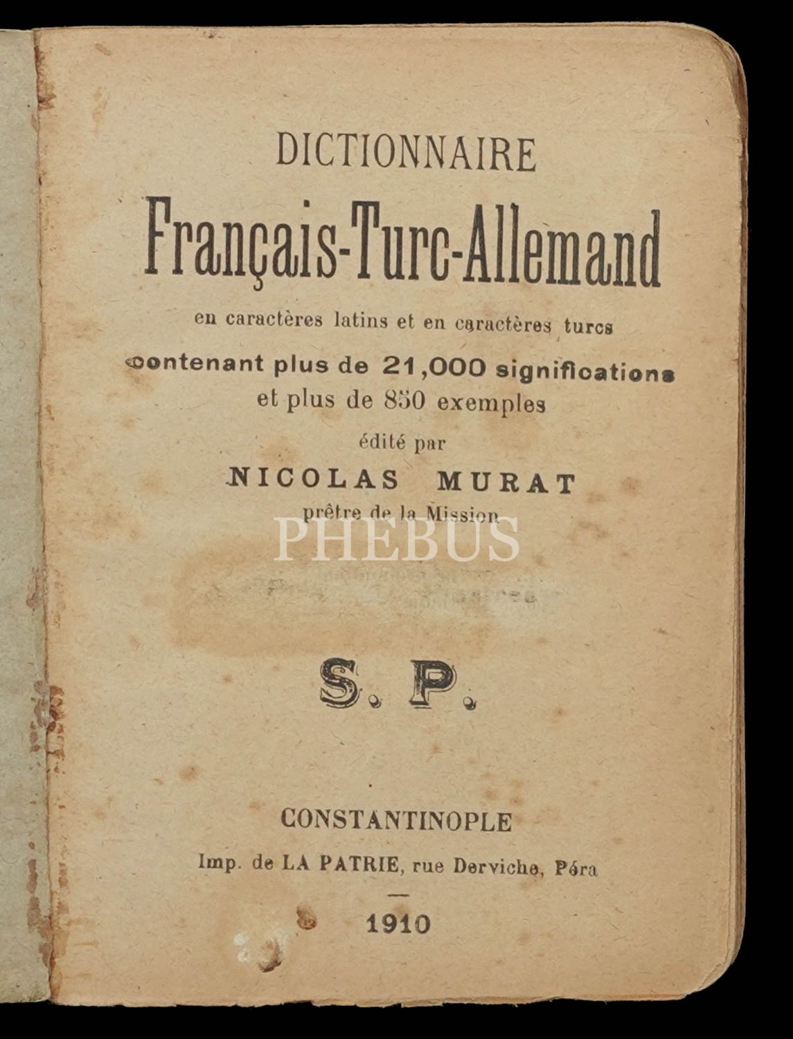 DICTIONNAIRE FRANÇAİS-TURC-ALLEMAND, Nicolas Murat, 1910, La Patrie Constantinople, 436 sayfa, 10x14 cm...