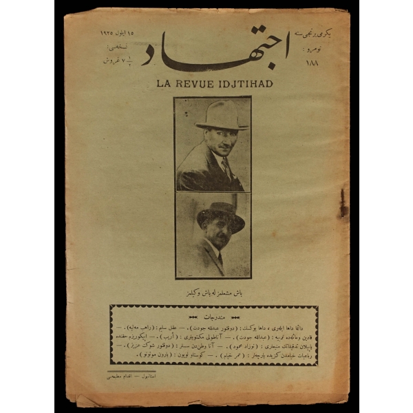 Şapkalı Atatürk ve İnönü - İCTİHAD - LA REVUE IDJTIHAD dergisi, 188. sayı, 10 Eylül 1925, 16 sayfa, 21x29 cm…