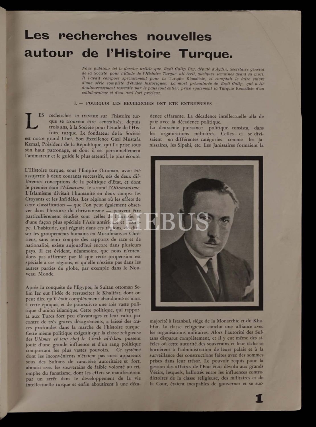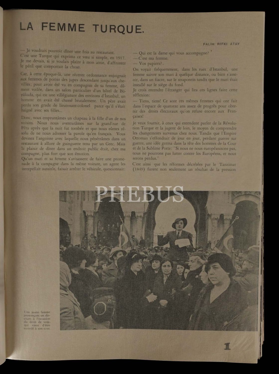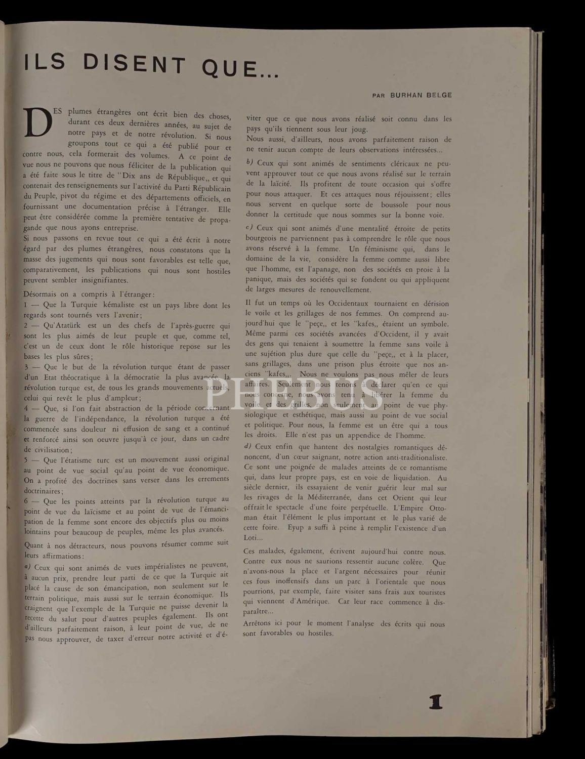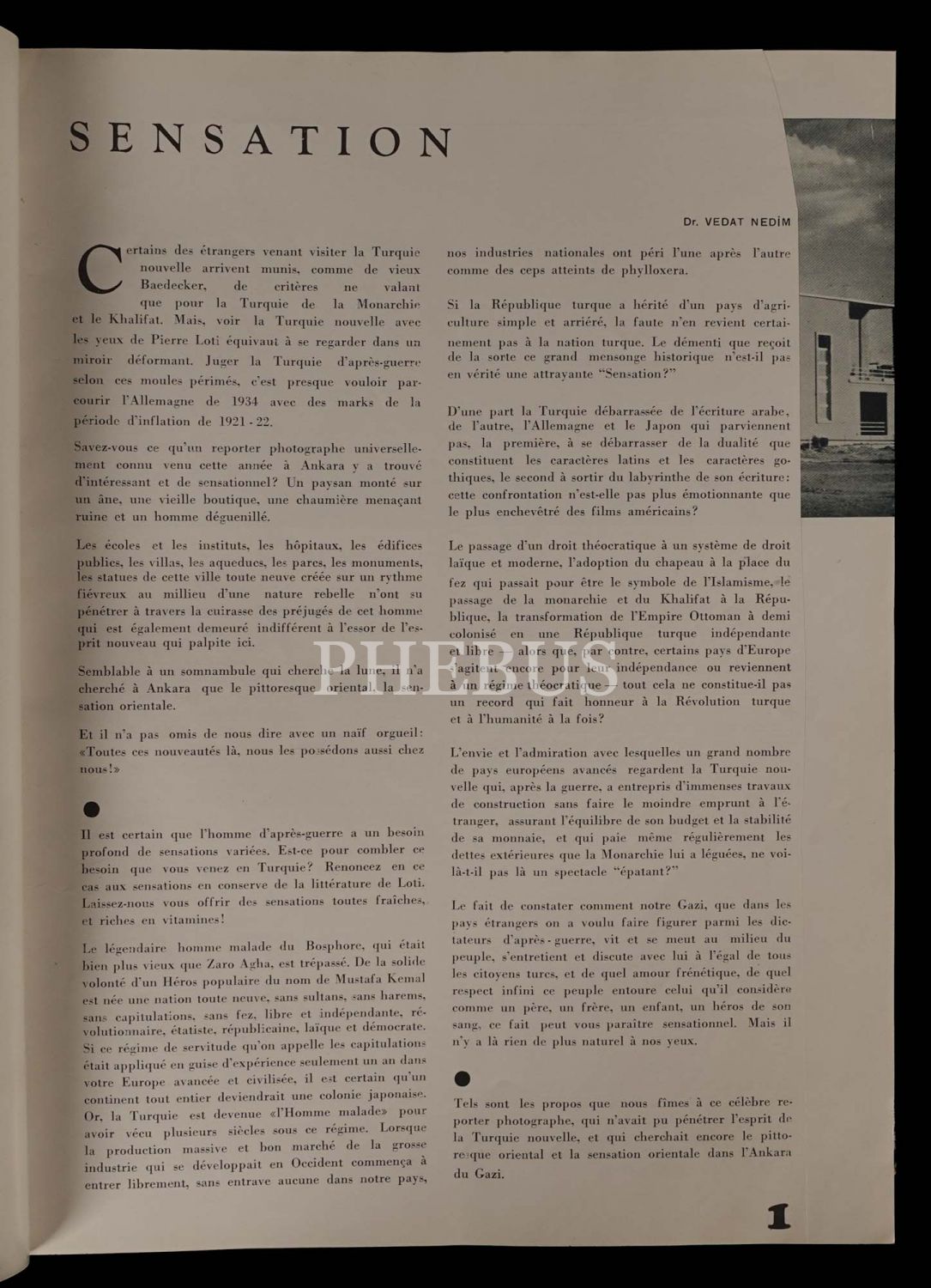 Matbuat Umum Müdürlüğü tarafından Yeni Türkiye´yi ve Mustafa Kemal Atatürk´ün devrimlerini dünya çapında tanıtmayı amaçlayarak Fransızca yayımlanmıştır. Derginin yazar kadrosu arasında Falih Rıfkı Atay, Burhan Belge ve Yakup Kadri Karaosmanoğlu´nun yer almasının yanı sıra çeşitli konularda uzmanların da yazılarına yer verilmiştir. Dergide yer alan fotoğraflar, Türkiye Cumhuriyeti´nin fotoğrafçısı Othmar Pferschy´e aittir.