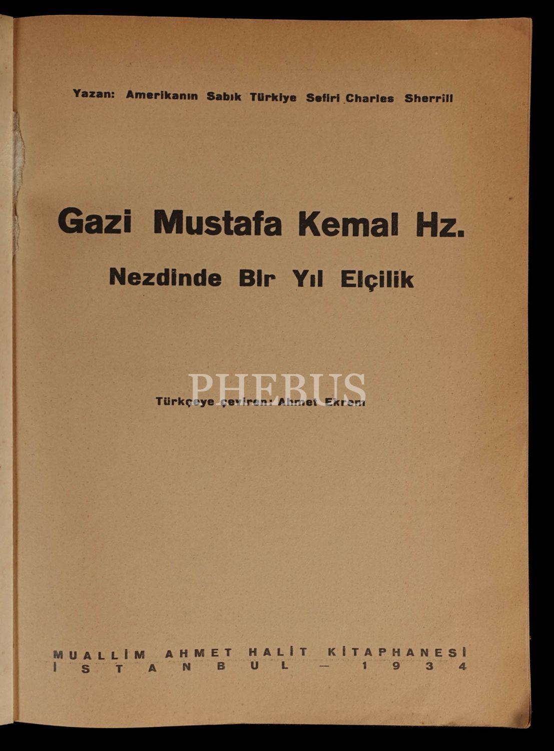 ATATÜRK NEZDİNDE BİR YIL ELÇİLİK, Sherrill, (çeviren: Ahmet Ekrem), 1935, Muallim Ahmet Halit Kitaphanesi, 96 sayfa, 19x24 cm...