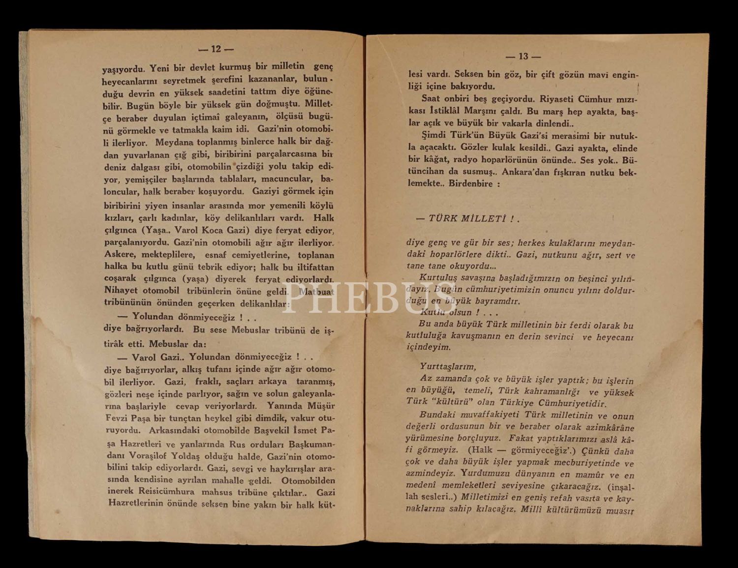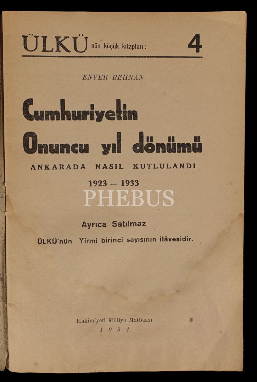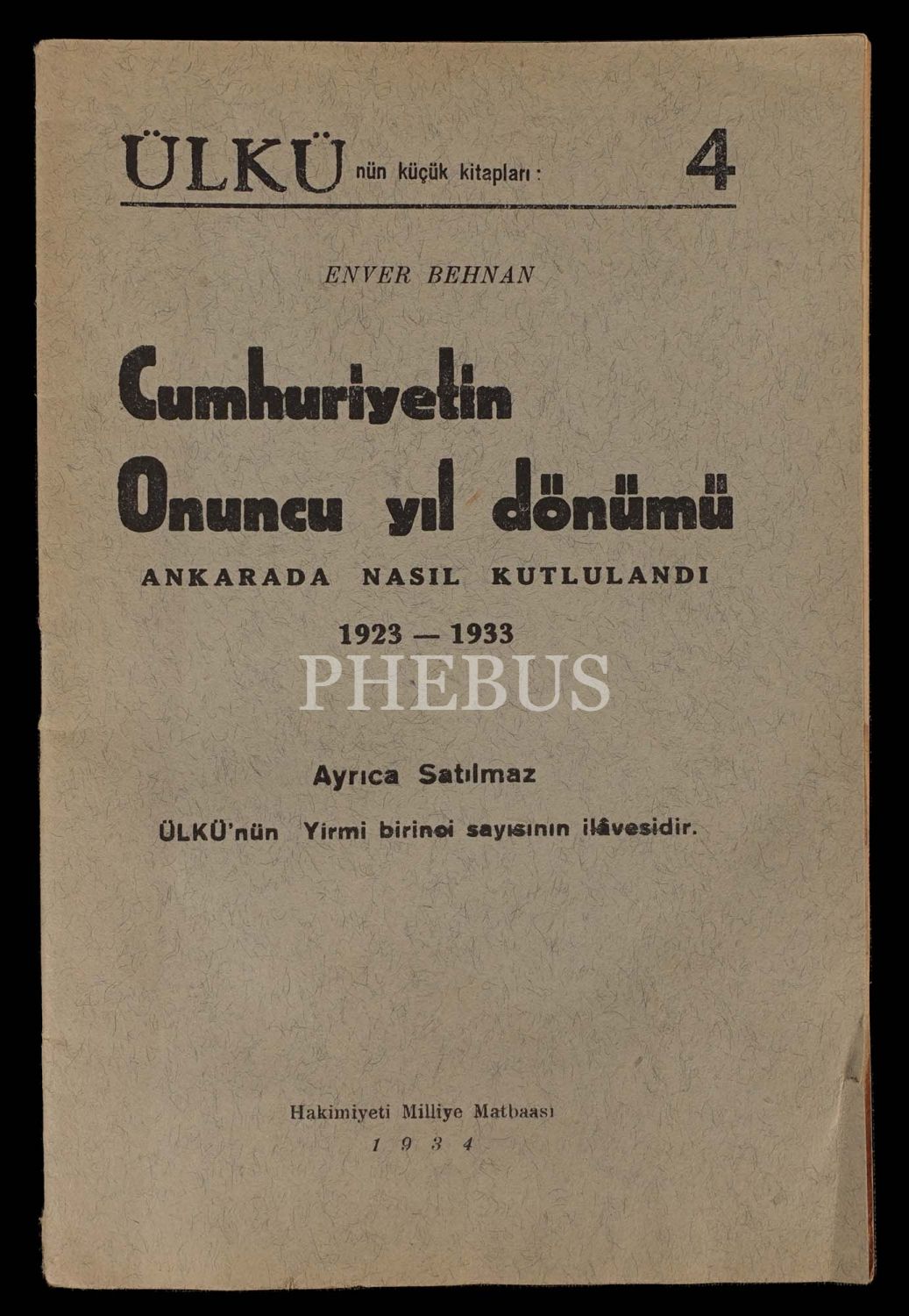 CUMHURİYETİN ONUNCU YIL DÖNÜMÜ ANKARADA NASIL KUTLANDI (1923-1933), Enver Behnan (Şapolyo), 1934, Hakimiyeti Milliye Matbaası, 36 sayfa, 13x20 cm...